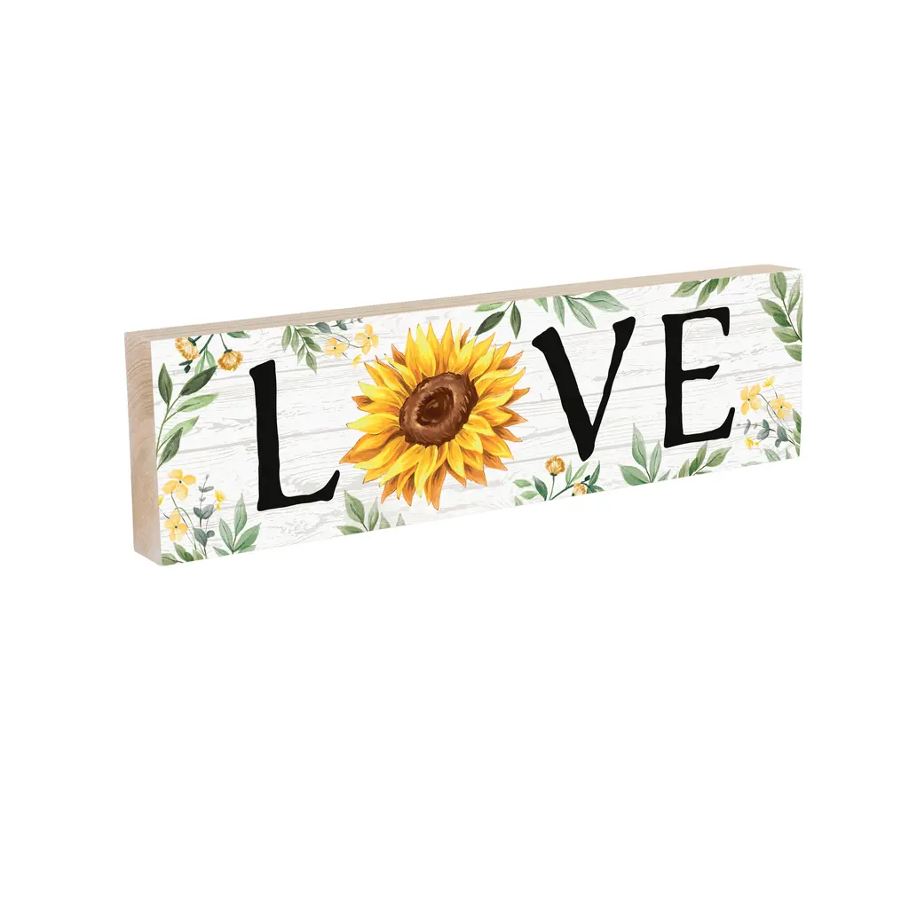 Harvest Blossom Sunflower Mantle Sign, "Love", 18"x5"