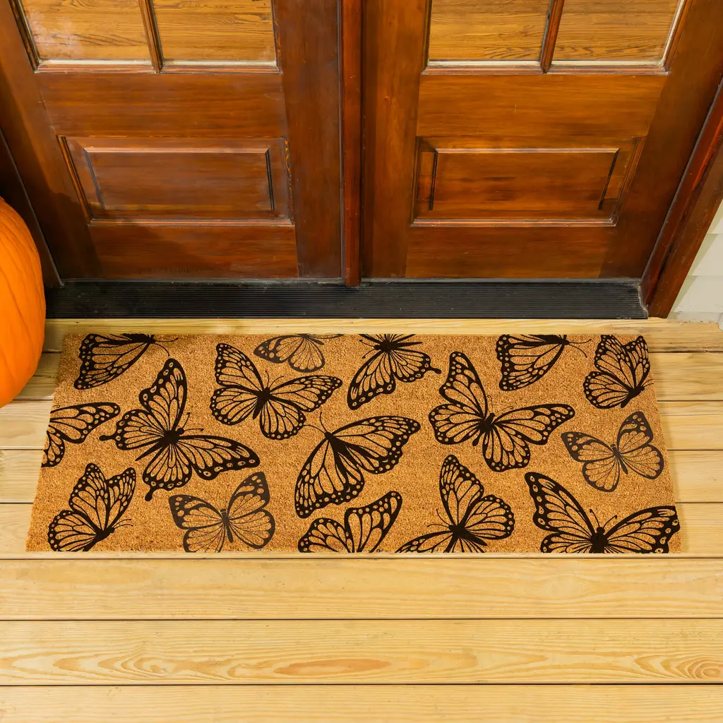 Sweep guests off their feet with our beautifully made coir mats! Made with vibrant pops of color that are perfect for the season, this mat will put pep in anyone's step. Crafted from coco husk fiber, the eye-catching mat is natural and eco-friendly. Ideal for high-traffic areas, the mat traps dirt and debris to prevent messes from being tracked into homes. Designs are printed directly on the mats with fade-resistant dyes. Since the mat is crafted from natural coir, some shedding is to be expected. Shake off excess fibers or use a soft brush to gently sweep.