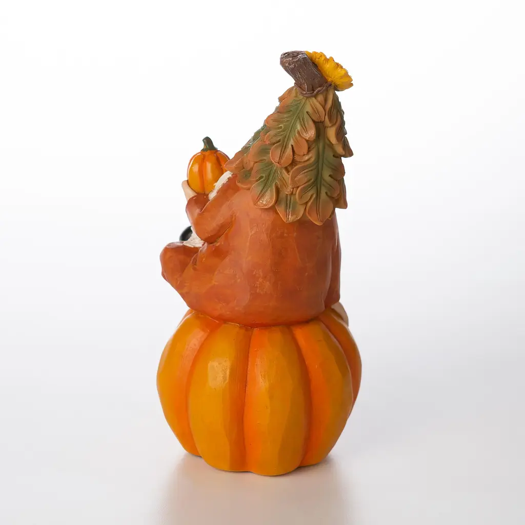Harvest Gnome On Pumpkin Statuary
