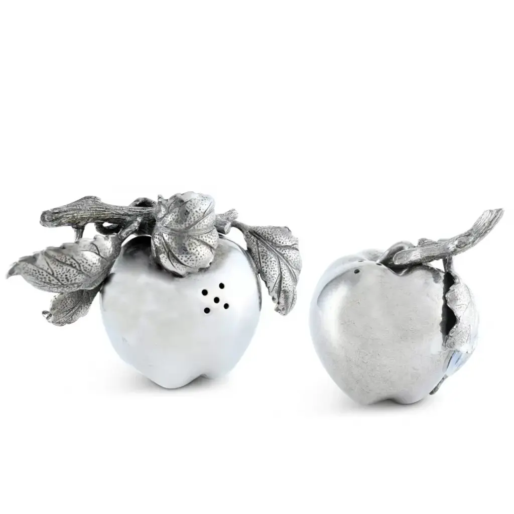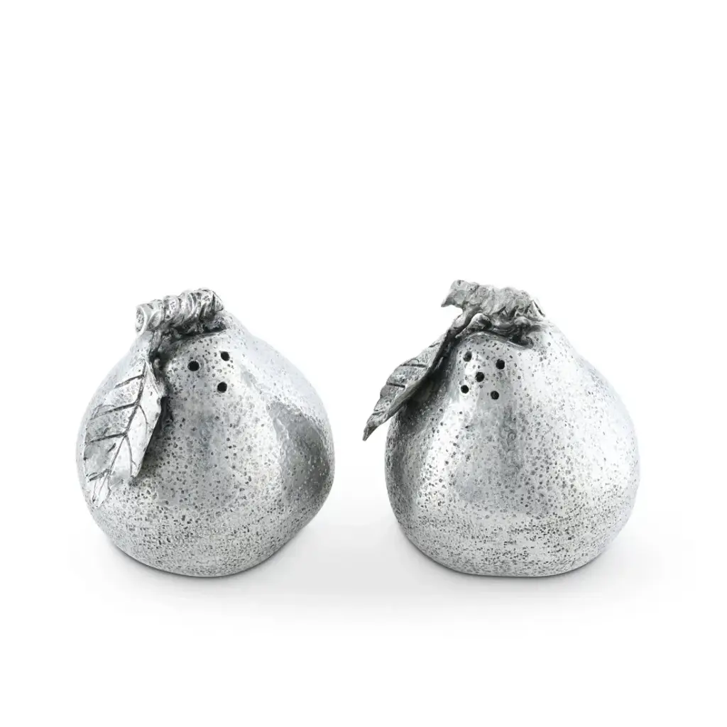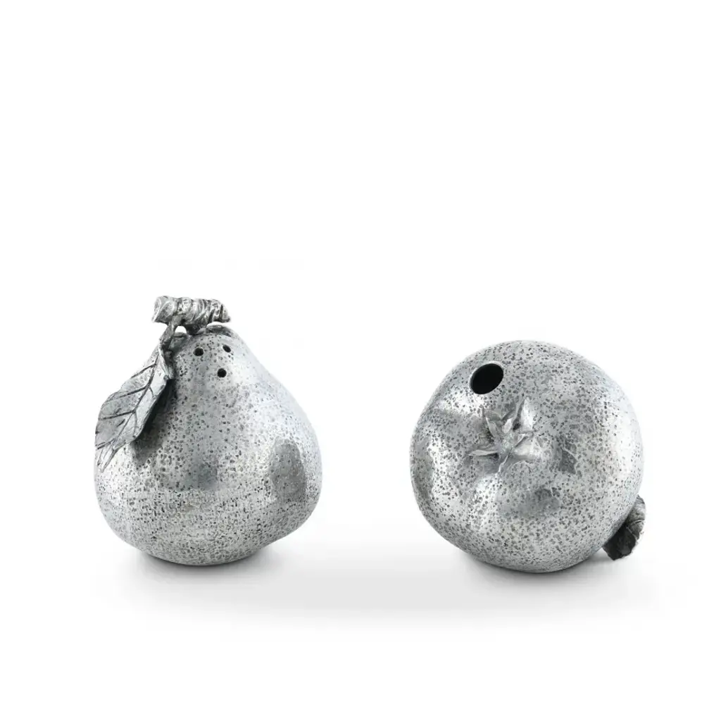 Fruit is both decorative and functional with Vagabond House's Pear Salt and Pepper Set. Crafted in luxury-grade pewter, the life-size pears show lifelike detail in their spotty flesh and rounded bottoms. Each piece's stem attaches to a figural branch, which also supports a single, veiny leaf. Vagabond House is a family-owned American company specializing in fine pewter tableware, servingware and giftware. Largely inspired by nature, their exclusive products are designed to be unique, functional heirlooms for those who seek to express tradition and style in both family and formal entertaining.