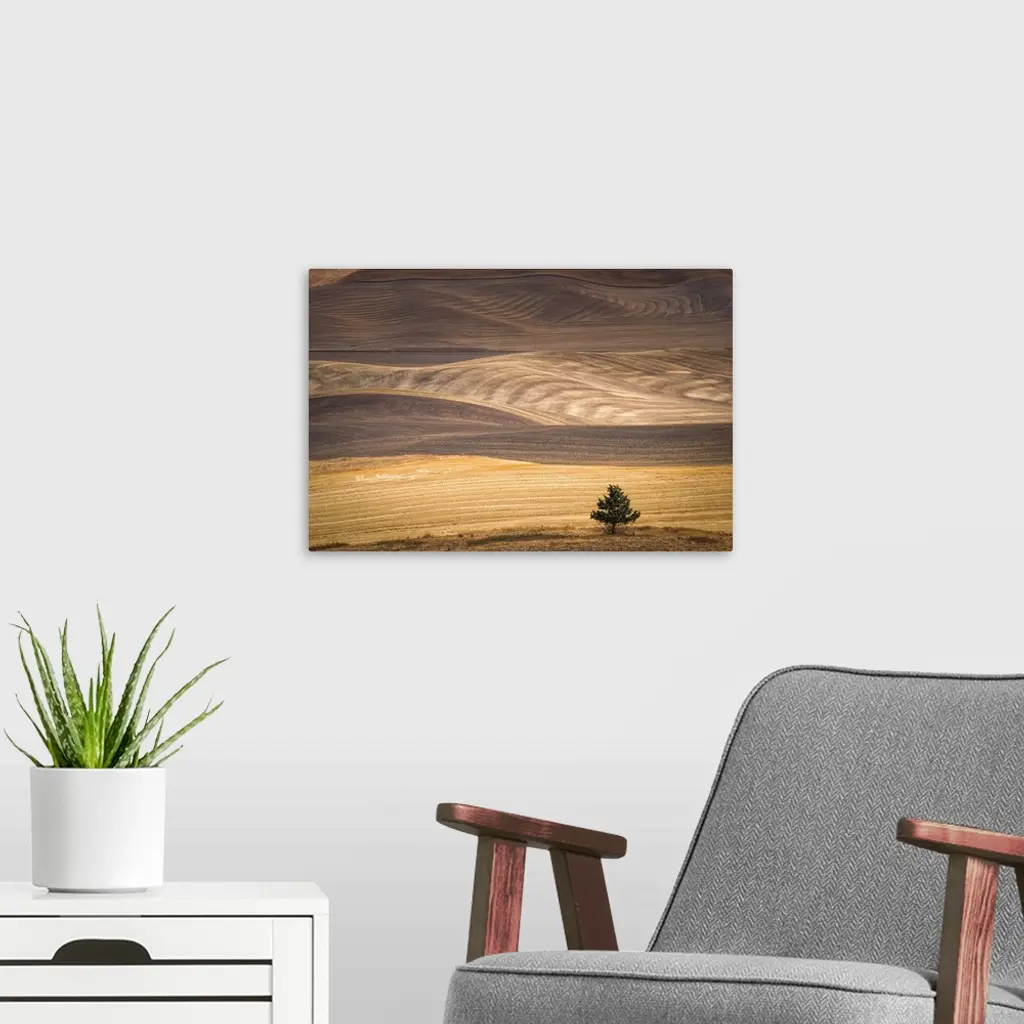 A lone tree at the base of the rolling hills of the Palouse in the fall.