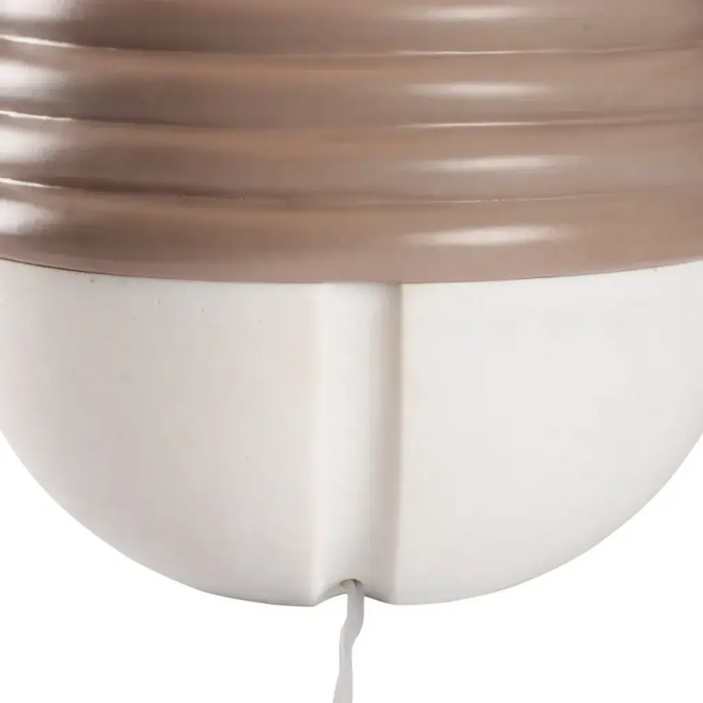 The Harwood Lamp features a sculptural ceramic base with a striking contrast of matte taupe glaze and matte white. Its bold form and rich finish add a contemporary edge to any setting.