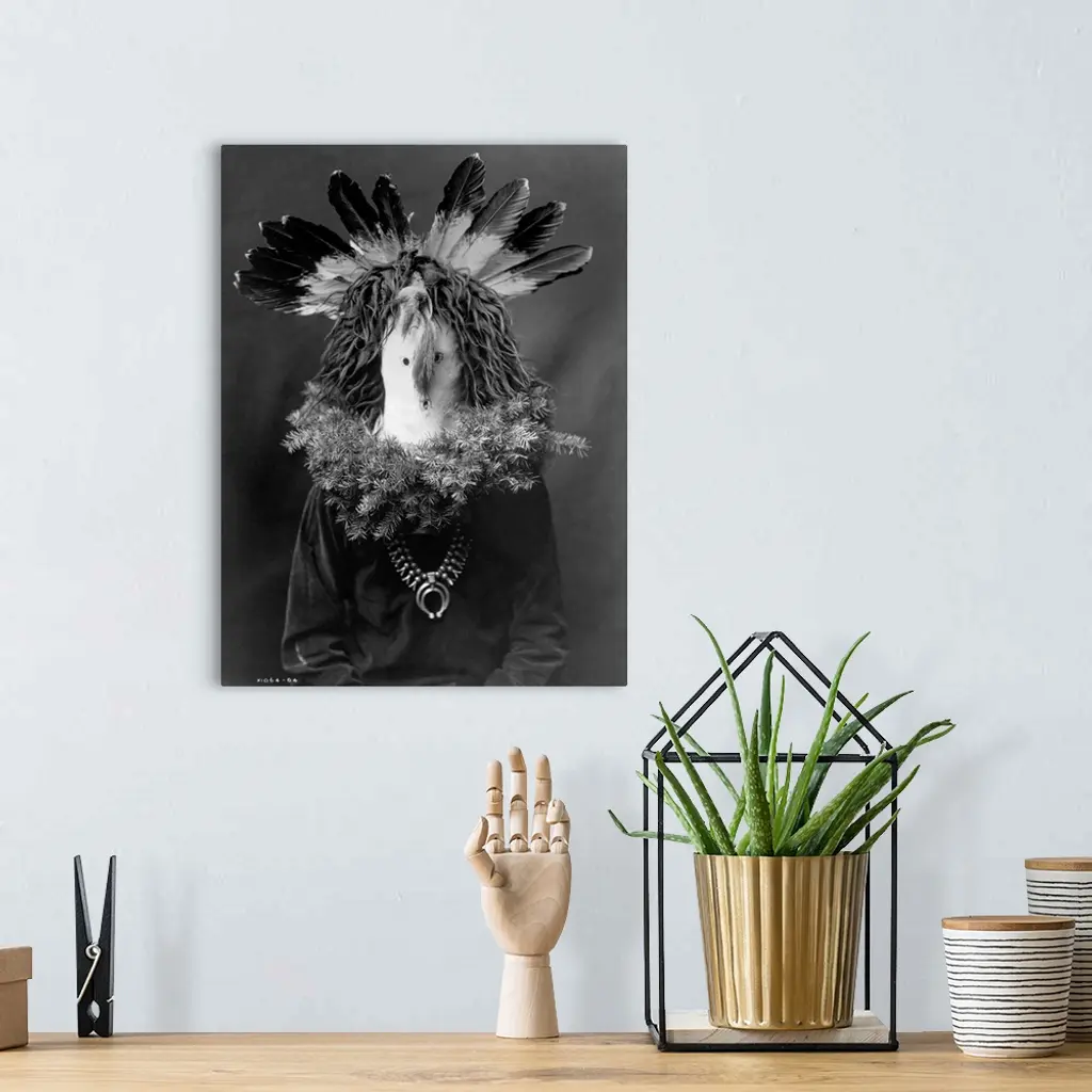 A photograph of a figure representing Haschogan, the Navajo house god, published in Volume I of The North American Indian (1907) by Edward S. Curtis.