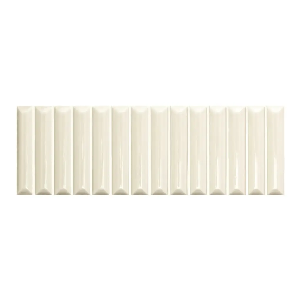 Hashi 4" x 12 Glossy Italian Wall Tile by Tonalite Italy. Nine glossy shades and one matte for an innovative collection, a relief element in 10x30cm/4 "x12" format that lends itself to various horizontal or vertical layout solutions. An essential design with a decisive presence that enhances the three-dimensionality of the ceramic material. The colors make it possible to create contrasting combinations or delicate matches.