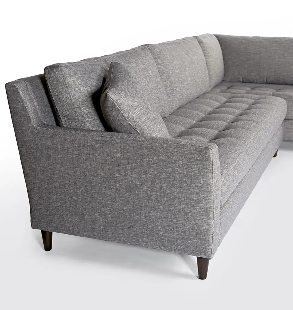 Designed with well-proportioned tufted seat cushions, our Hastings Collection offers both comfort and style. Each sectional sofa is offered in both right and left arm configurations and is assembled and upholstered in North Carolina using responsible processes and materials. Available in several high-quality leather and fabric upholstery options.