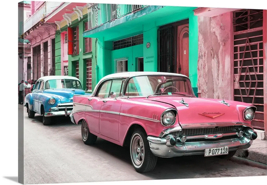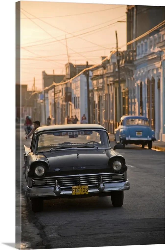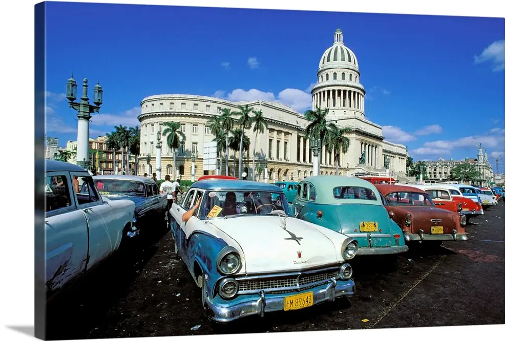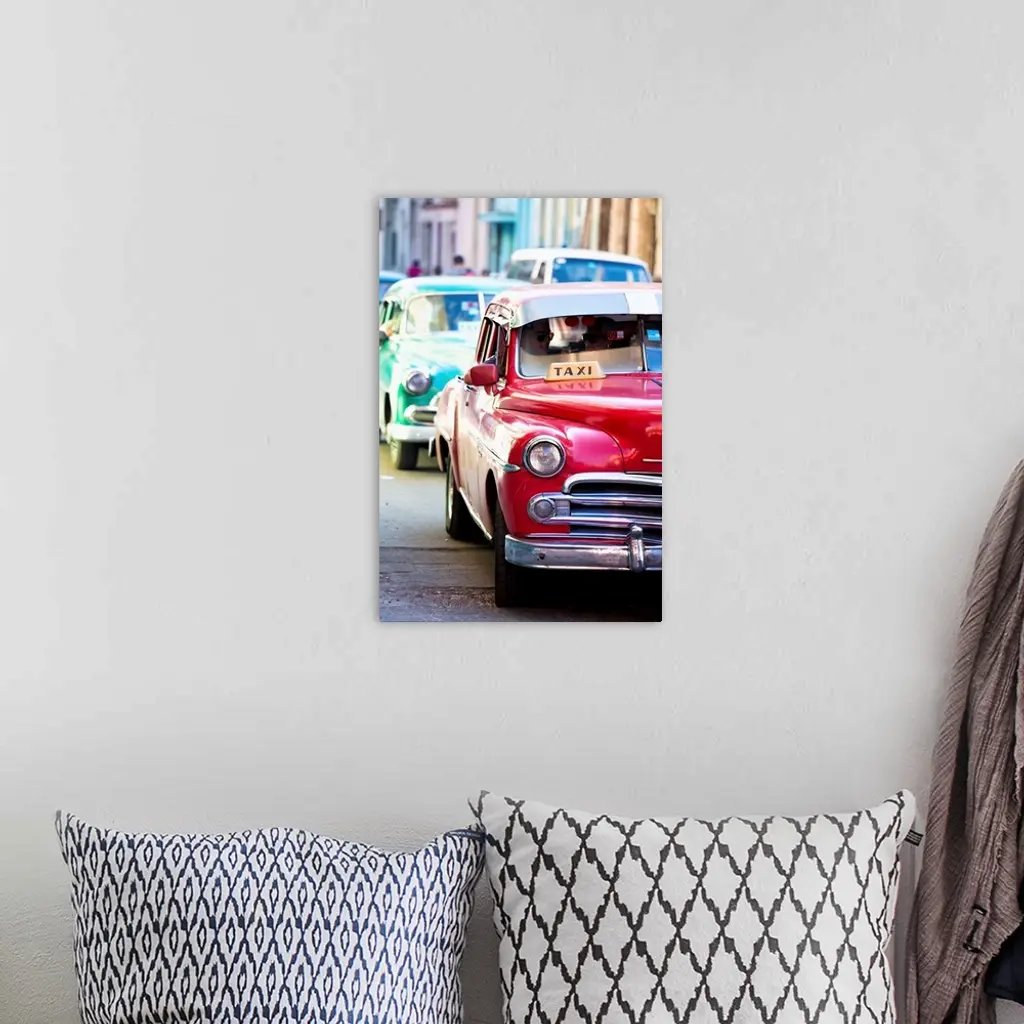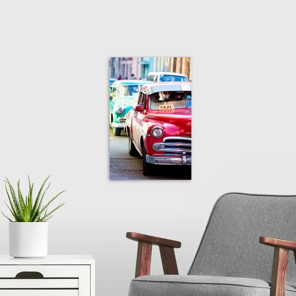 Vintage American cars used as local taxis, driving down Avenue Colon during afternoon rush hour, Havana Centro, Havana, Cuba, West Indies, Central America.