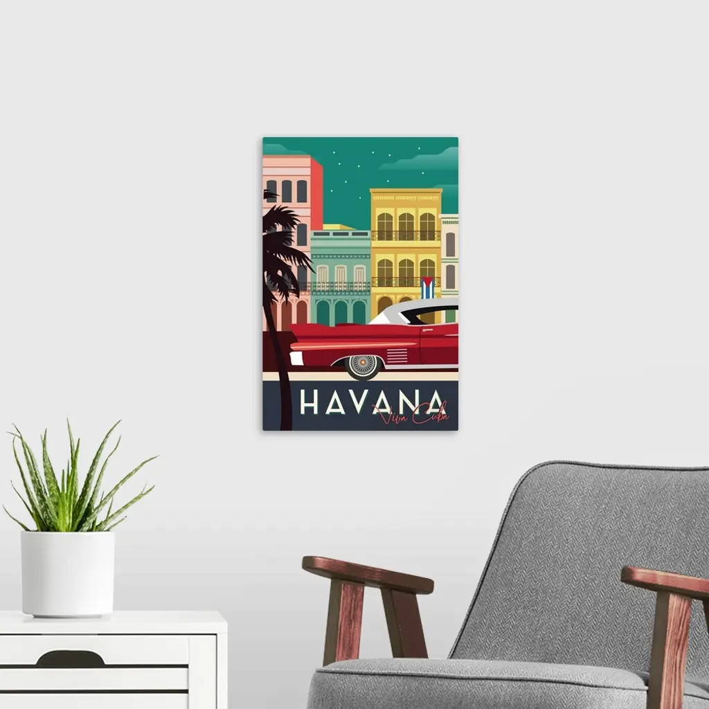 Havana, Cuba - Buildings & Vintage Car - Vector wall art for home and office decor. Discover canvas art prints, photos, mural, big canvas art and framed wall art in GreatBigCanvas.com's varied collections.