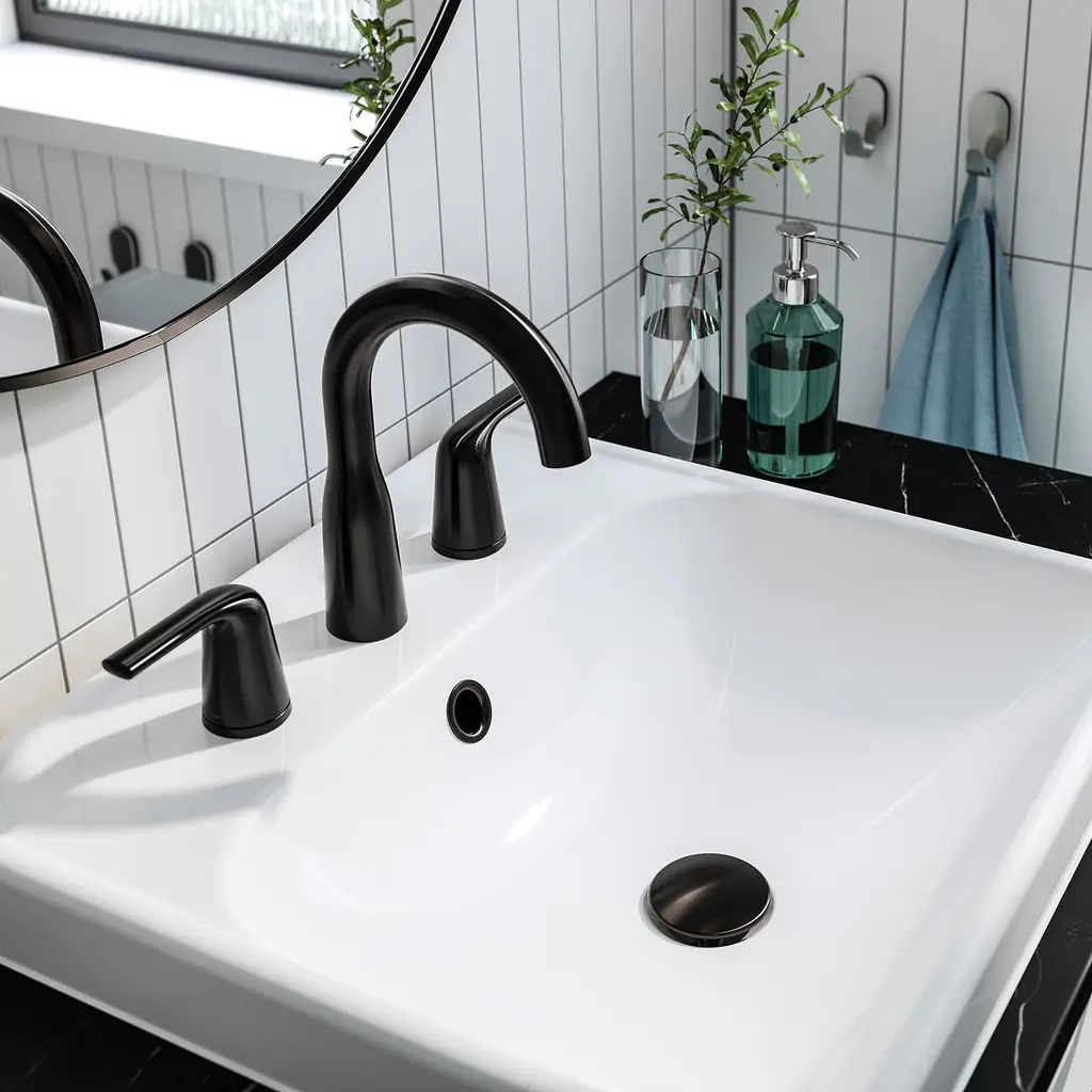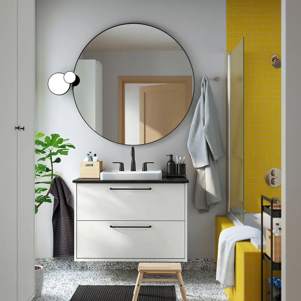 HAVBÄCK / ORRSJÖN Bathroom vanity with sink & faucet - white/black marble effect 37x21 1/2x28 3/8 ". What’s not to like? The clean, straight lines and a matt white finish give your bathroom a fresh and appealing character that is easy to personalize with your choice of knobs or handles.