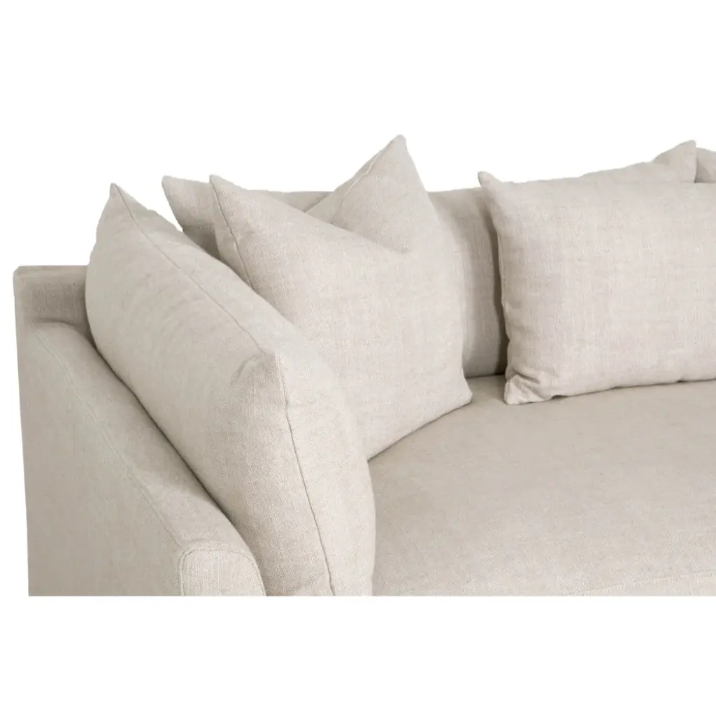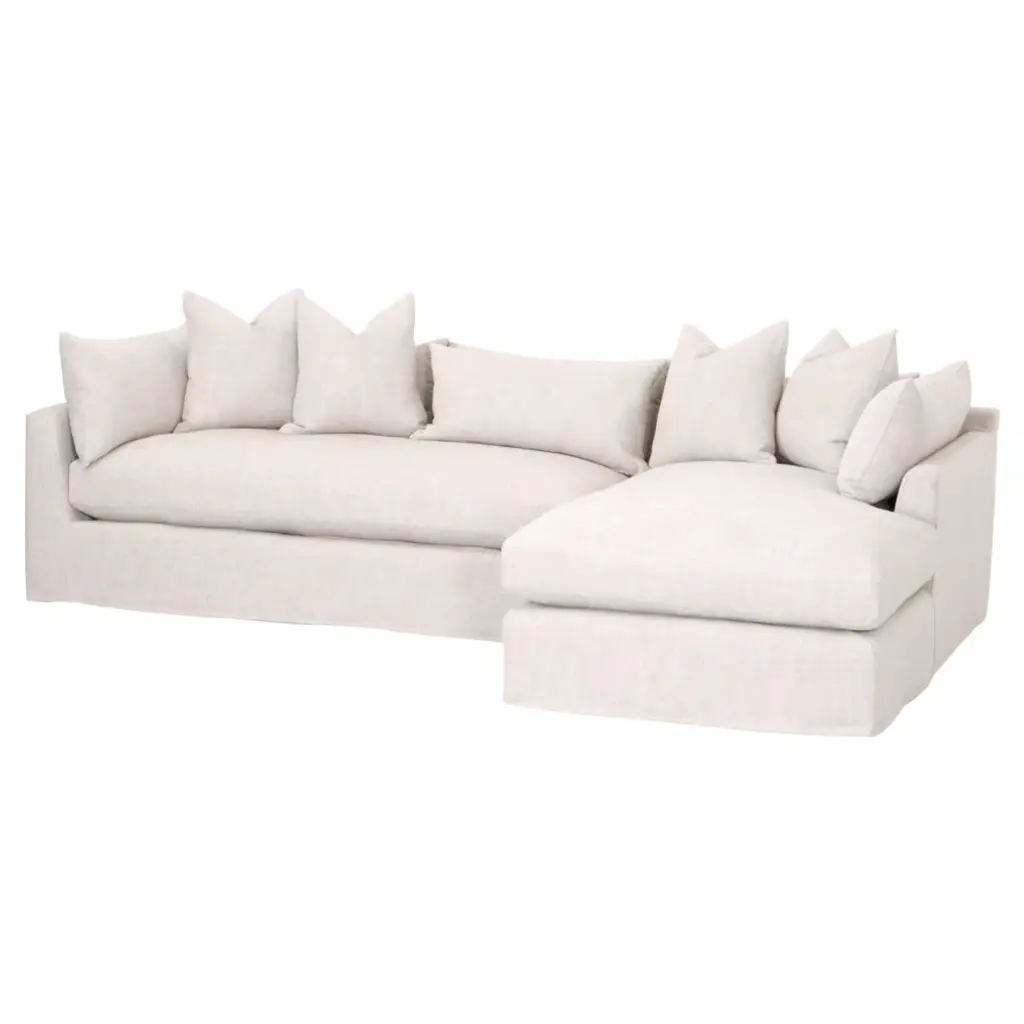 Comfort + style come together in this stunning sectional. It's birch wood base + linen fabric slipcovered fabric make it sturdy + soft at the same time. Featuring a right facing chaise and lots of pillows to ensure you and your guests are always comfortable.