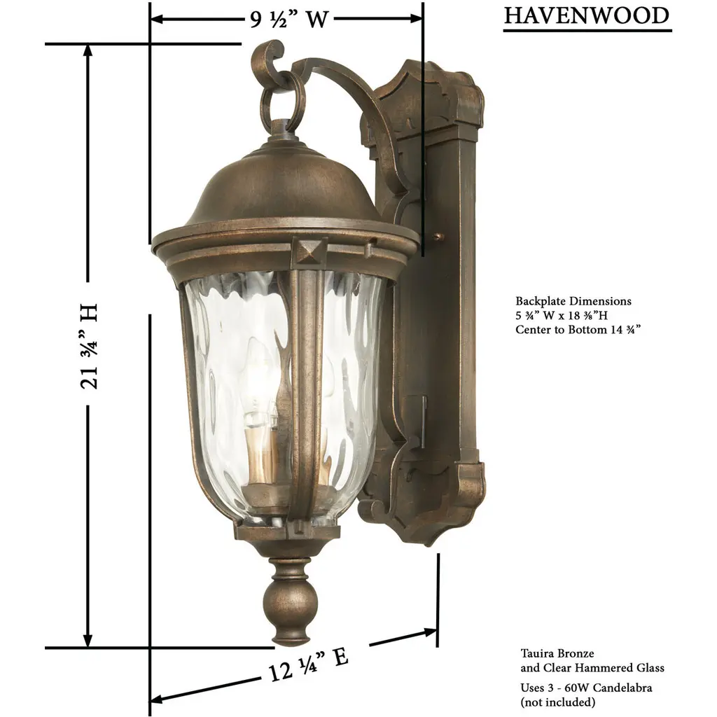 Havenwood 3 Light 22 Inch Tavira Bronze And Alder Silver Outdoor Wall Mount, Great Outdoors