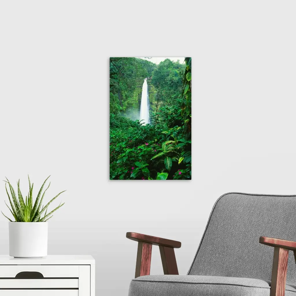 Hawaii, Big Island, Akaka Falls View Through Lush Greenery, Impatiens In Foreground wall art for home and office decor. Discover canvas art prints, photos, mural, big canvas art and framed wall art in GreatBigCanvas.com's varied collections.