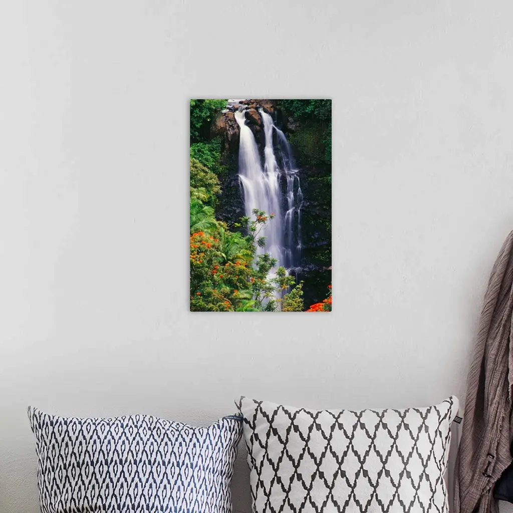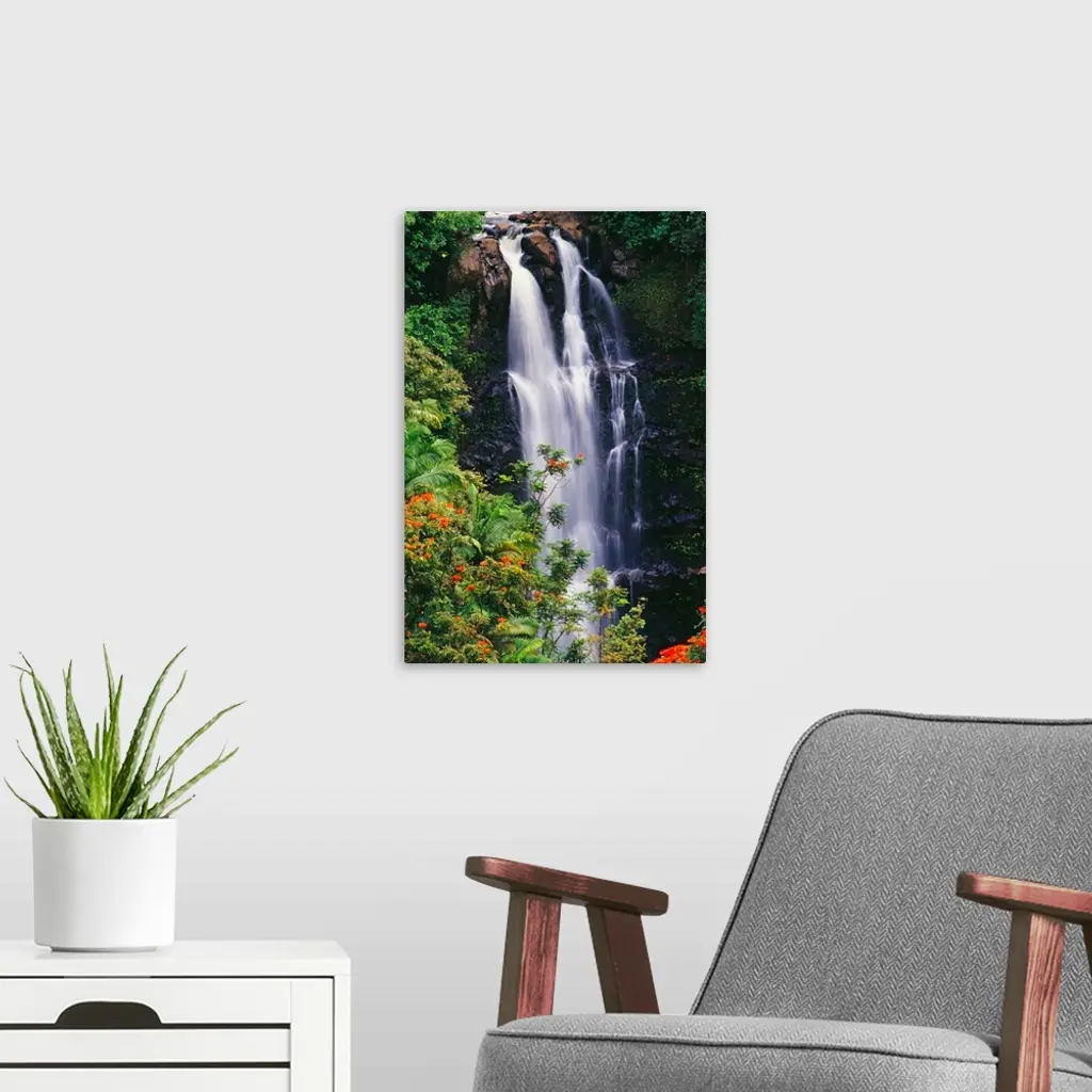 Hawaii, Big Island, Hamakua Coast, Nanue Falls Surrounded By Orange African Tulip Tree wall art for home and office decor. Discover canvas art prints, photos, mural, big canvas art and framed wall art in GreatBigCanvas.com's varied collections.