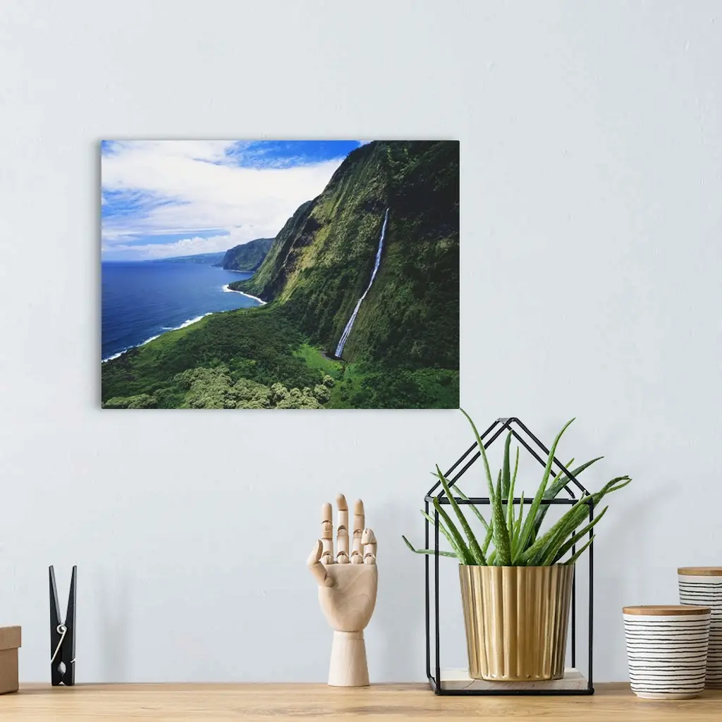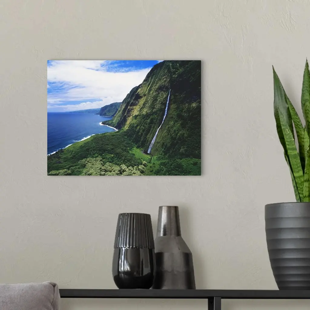 Hawaii, Big Island, Hamakua Coast, Waterfalls Cascade Into The Ocean wall art for home and office decor. Discover canvas art prints, photos, mural, big canvas art and framed wall art in GreatBigCanvas.com's varied collections.