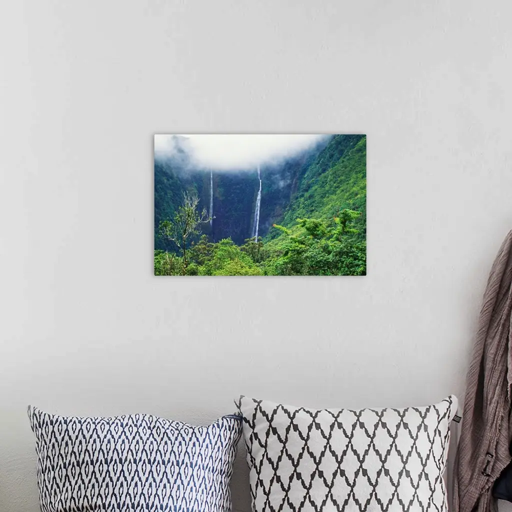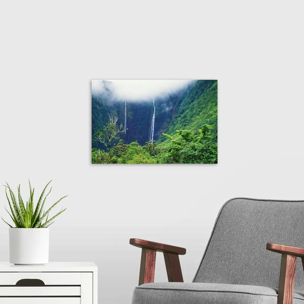 Hawaii, Big Island, Waipio Valley, Twin Waterfalls With Lush Green Forest wall art for home and office decor. Discover canvas art prints, photos, mural, big canvas art and framed wall art in GreatBigCanvas.com's varied collections.