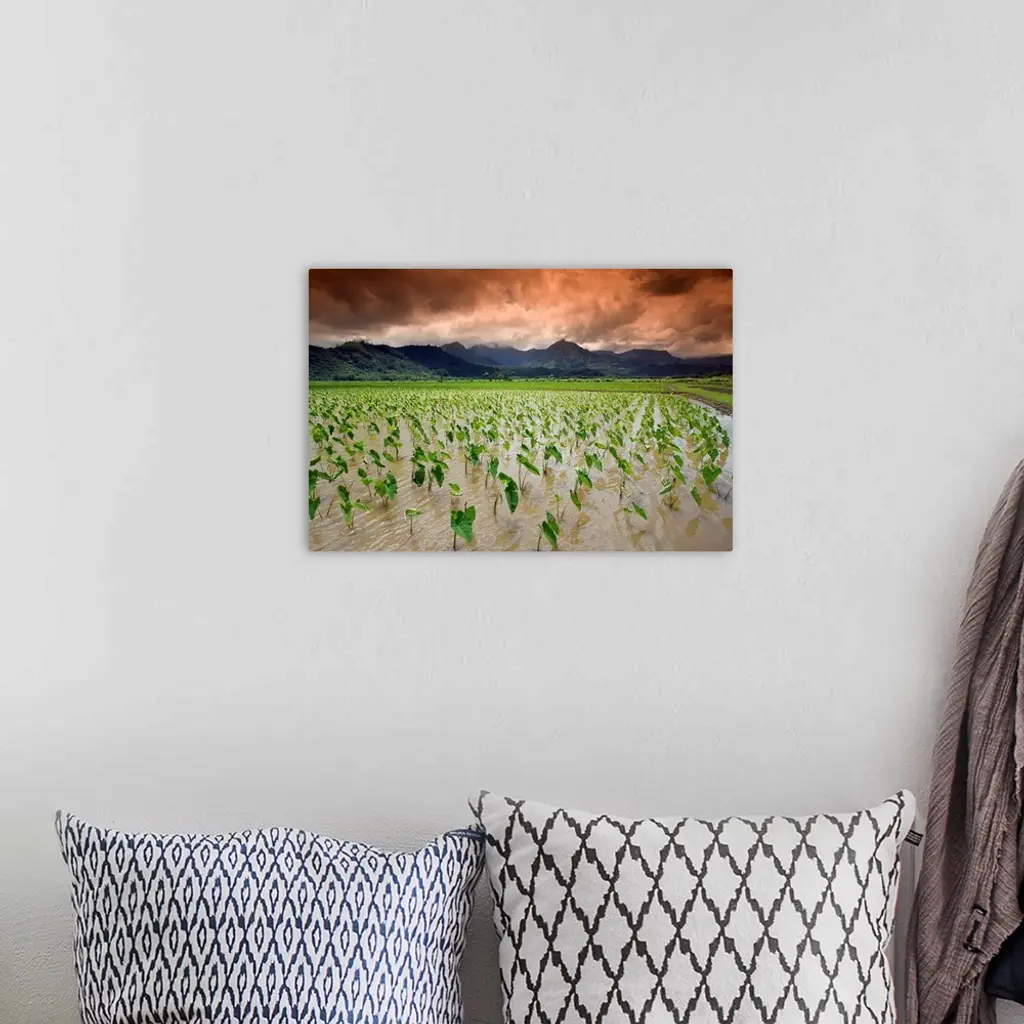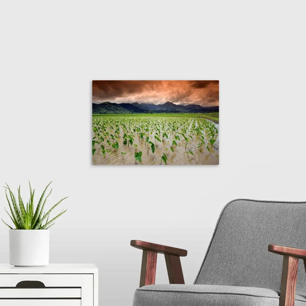 Hawaii, Kauai, Hanalei, Afternoon Threatening Clouds Hang Over A Taro Field wall art for home and office decor. Discover canvas art prints, photos, mural, big canvas art and framed wall art in GreatBigCanvas.com's varied collections.