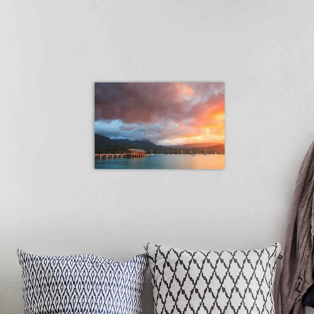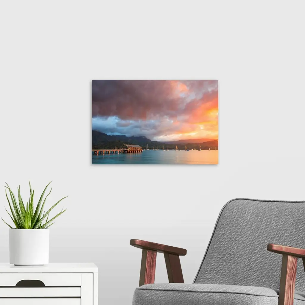 USA, Hawaii, Kauai, Hanalei Bay and Pier