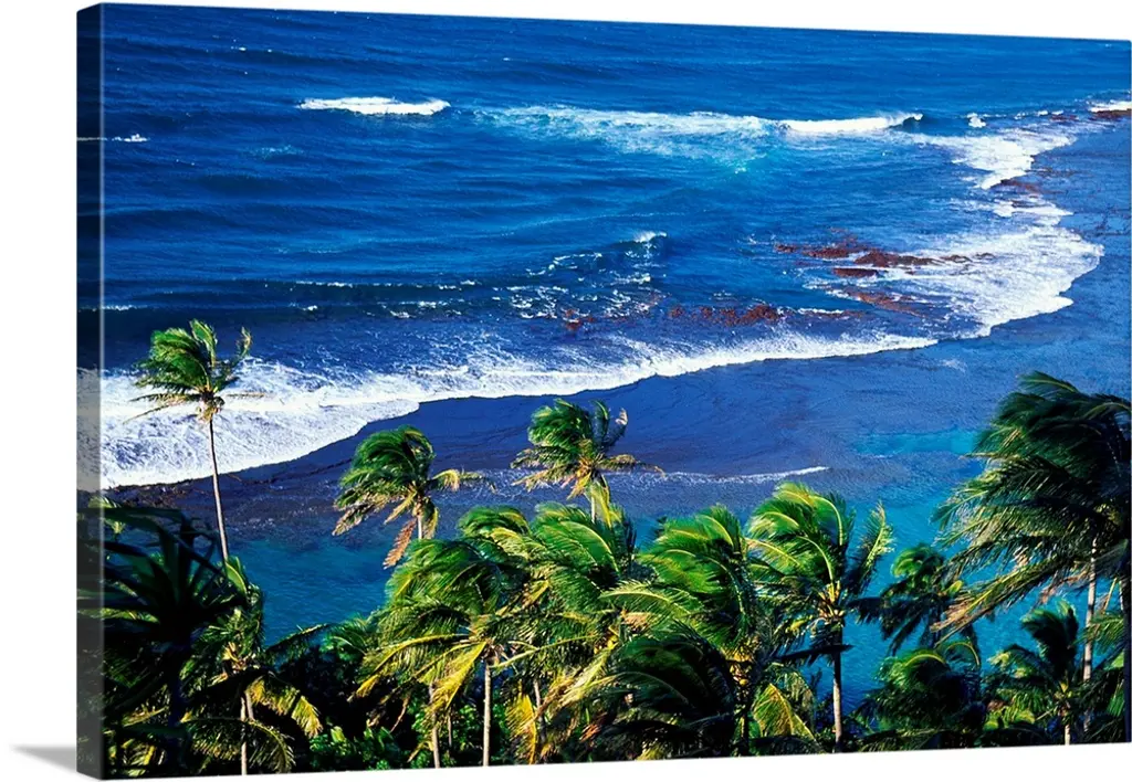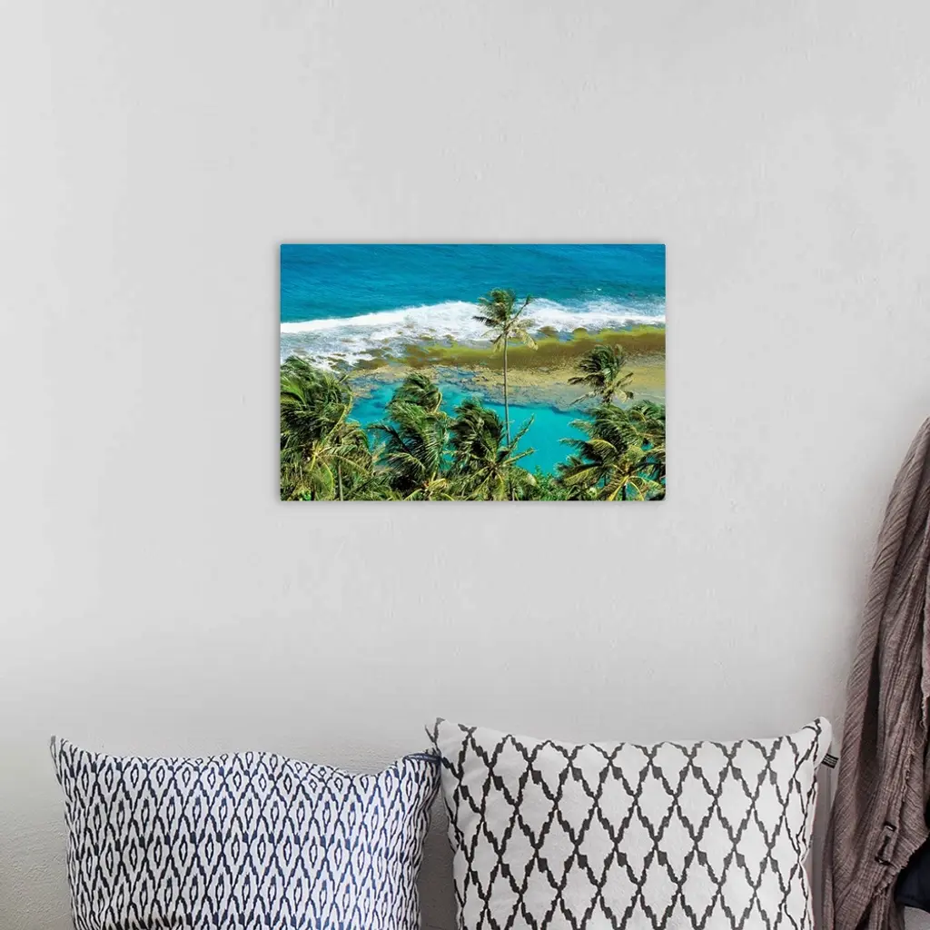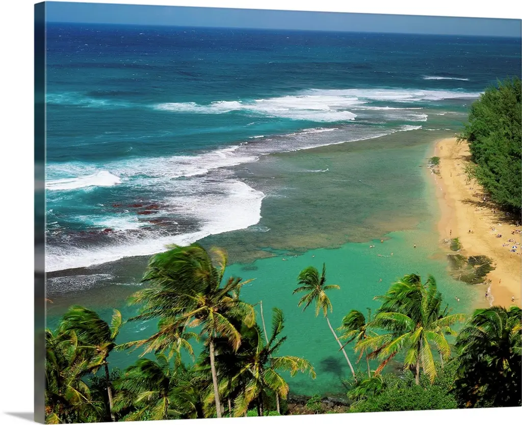 Hawaii, Kauai, Napali Coast, Palm Trees, Ocean With Breaking Waves wall art for home and office decor. Discover canvas art prints, photos, mural, big canvas art and framed wall art in GreatBigCanvas.com's varied collections.