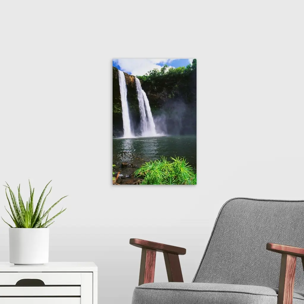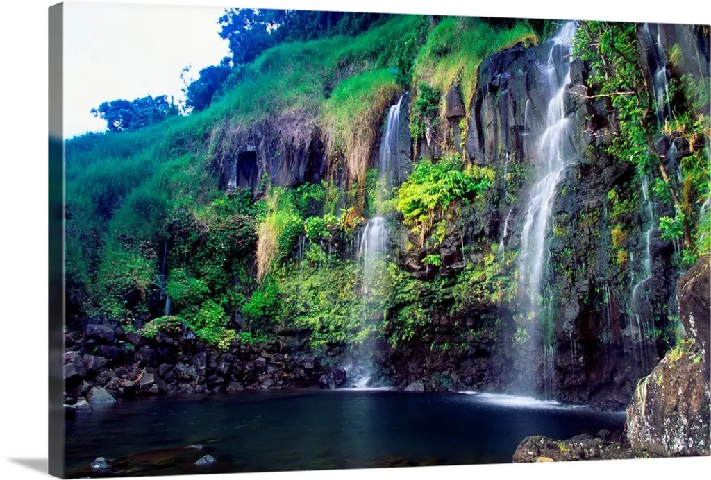 Hawaii, Kauai, Wailua State Park, Three Waterfalls wall art for home and office decor. Discover canvas art prints, photos, mural, big canvas art and framed wall art in GreatBigCanvas.com's varied collections.