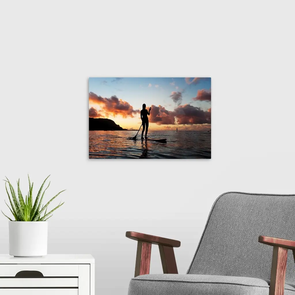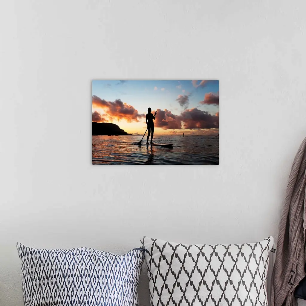 Hawaii, Kauai, Woman Stand Up Paddling In Ocean, Beautiful Sunset wall art for home and office decor. Discover canvas art prints, photos, mural, big canvas art and framed wall art in GreatBigCanvas.com's varied collections.