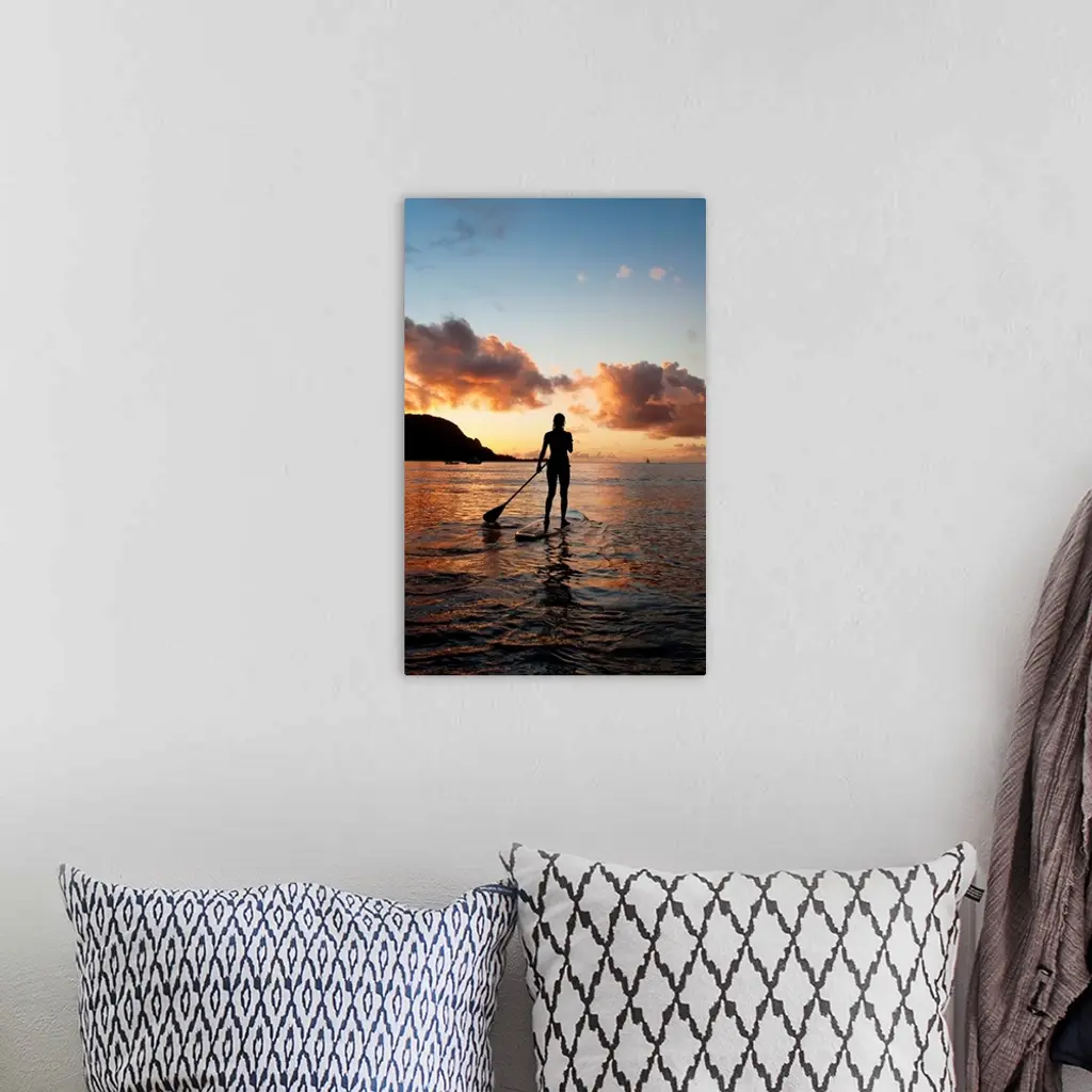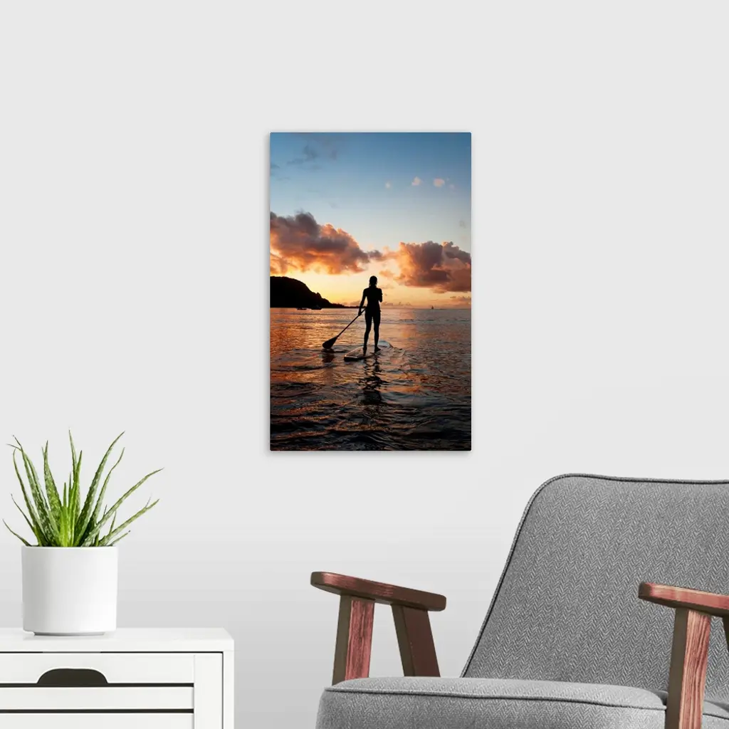 Hawaii, Kauai, Woman Stand Up Paddling In Ocean, Beautiful Sunset wall art for home and office decor. Discover canvas art prints, photos, mural, big canvas art and framed wall art in GreatBigCanvas.com's varied collections.