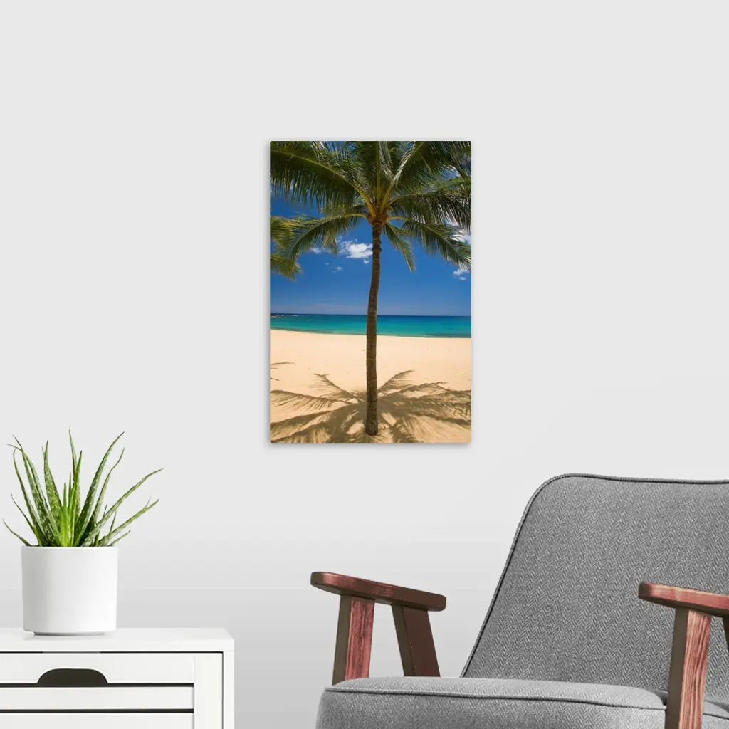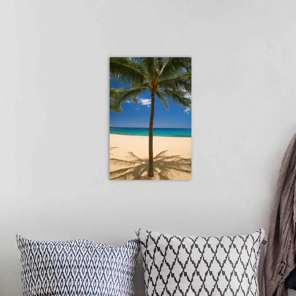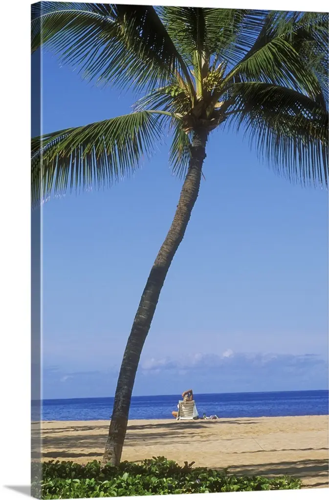 Hawaii, Lanai, Hulopoe Beach, Palm Tree Centered With Sandy Beach And Turquoise Ocean wall art for home and office decor. Discover canvas art prints, photos, mural, big canvas art and framed wall art in GreatBigCanvas.com's varied collections.