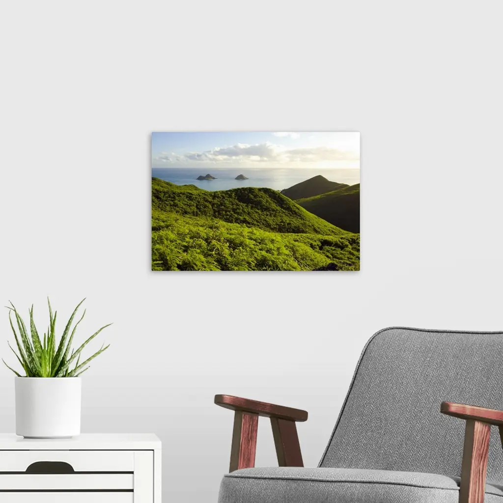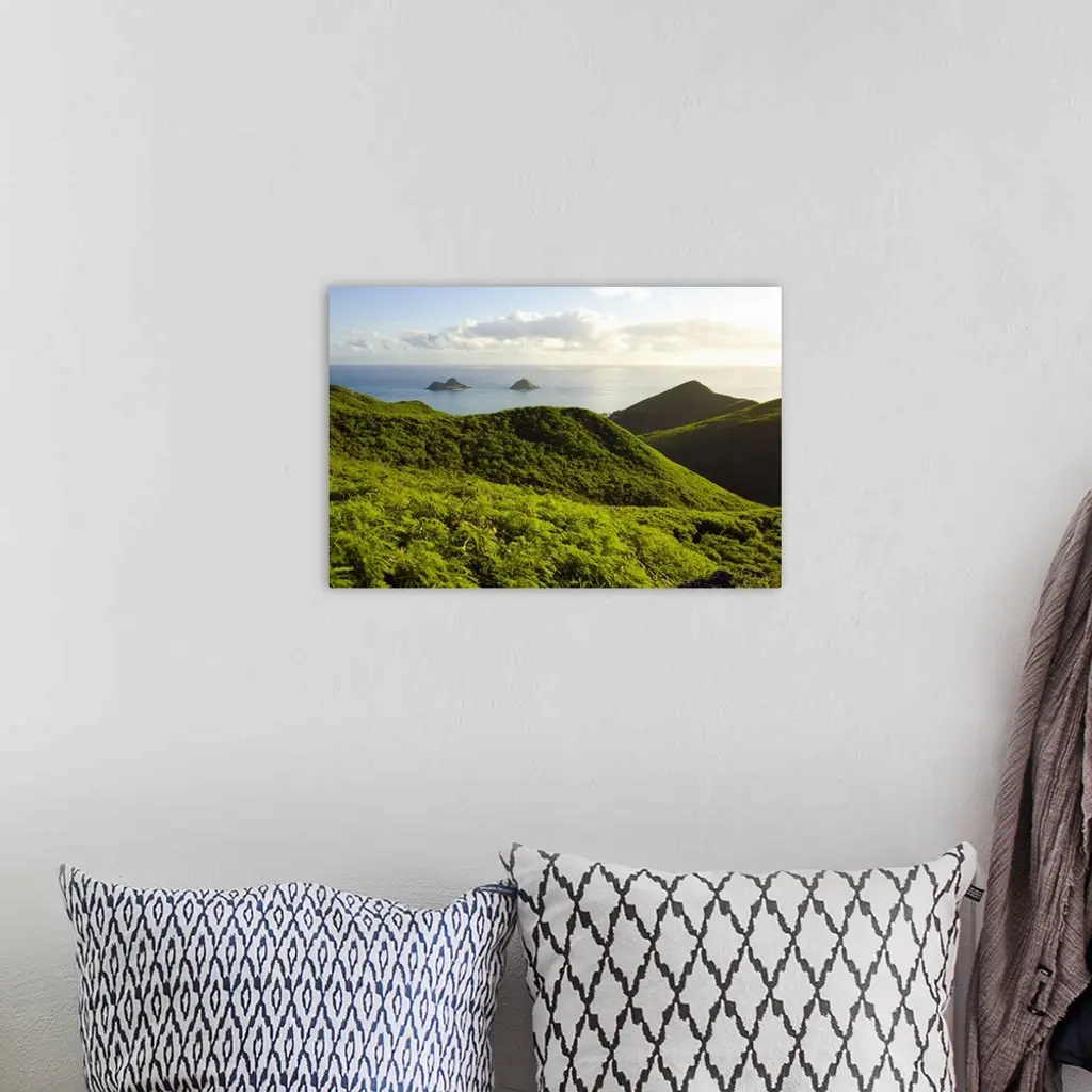 Hawaii, Lanikai, View Of Mountains And Mokulua Islands wall art for home and office decor. Discover canvas art prints, photos, mural, big canvas art and framed wall art in GreatBigCanvas.com's varied collections.