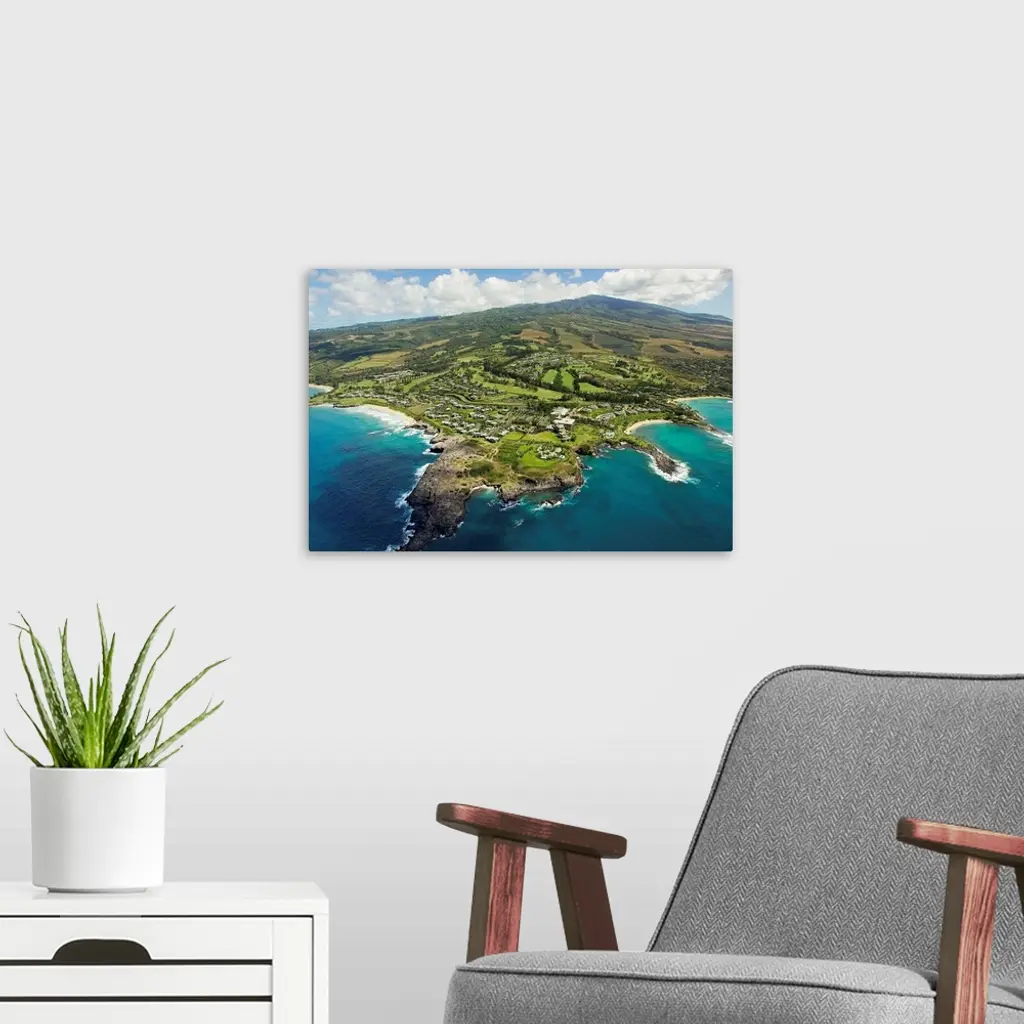 Hawaii, Maui, Aerial Of Kapalua Resort Along The Ocean wall art for home and office decor. Discover canvas art prints, photos, mural, big canvas art and framed wall art in GreatBigCanvas.com's varied collections.