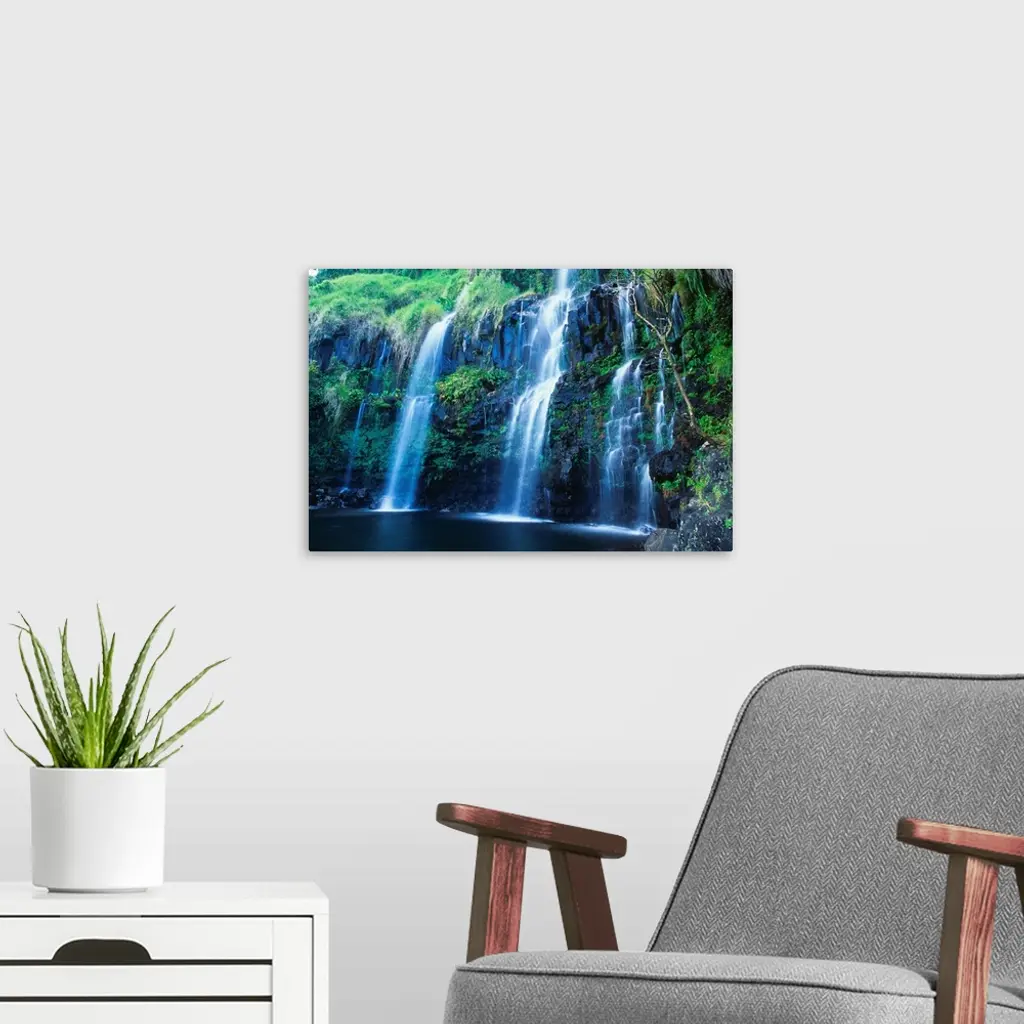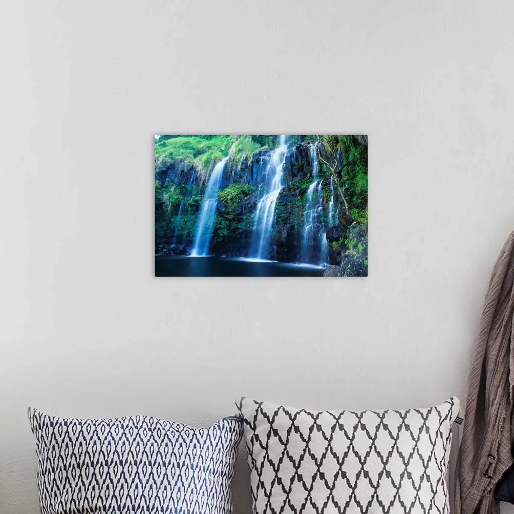 Hawaii, Maui, Hana Coast, Waterfall Flows Into Blue Pool wall art for home and office decor. Discover canvas art prints, photos, mural, big canvas art and framed wall art in GreatBigCanvas.com's varied collections.