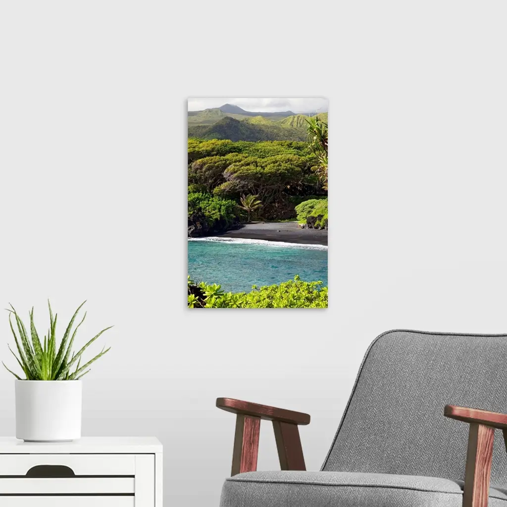 Hawaii, Maui, Hana, The Black Sand Beach of Waianapanapa wall art for home and office decor. Discover canvas art prints, photos, mural, big canvas art and framed wall art in GreatBigCanvas.com's varied collections.