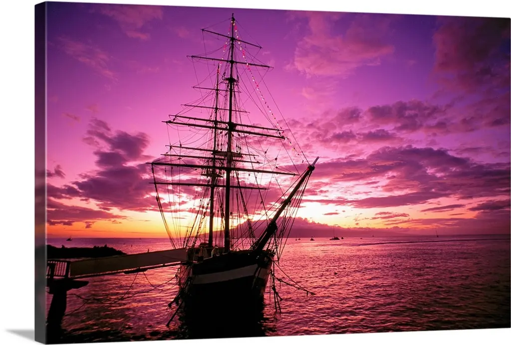 Hawaii, Maui, Lahaina, Carthaginian Silhouetted At Sunset wall art for home and office decor. Discover canvas art prints, photos, mural, big canvas art and framed wall art in GreatBigCanvas.com's varied collections.