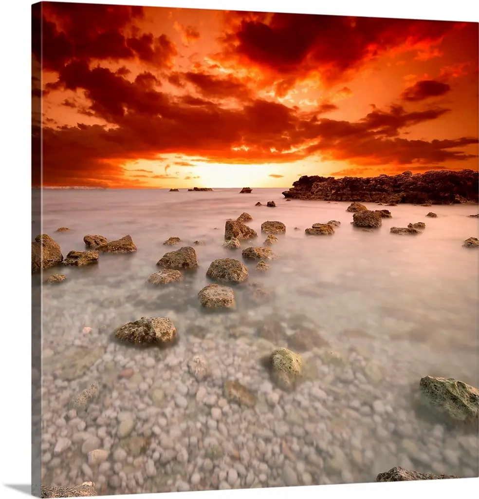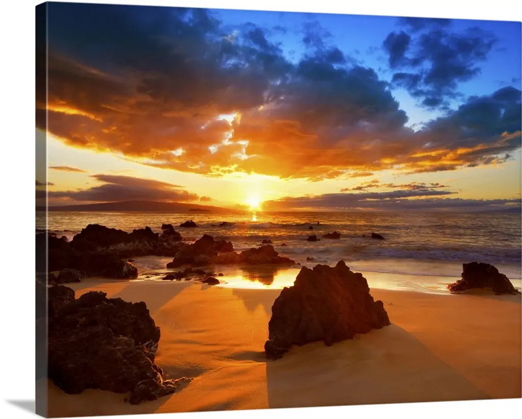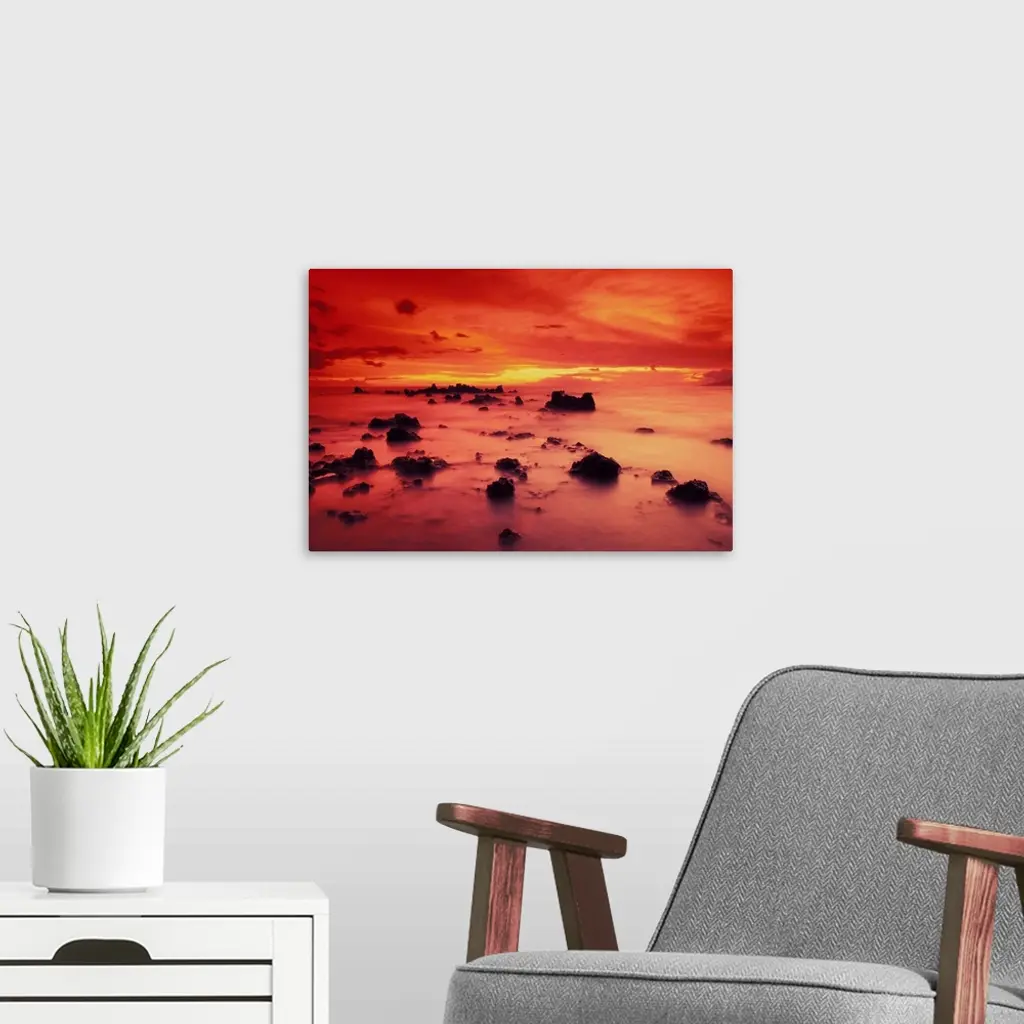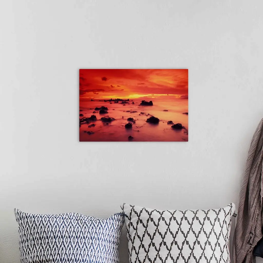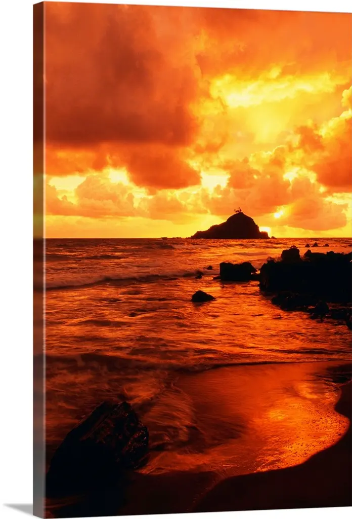 Hawaii, Maui, Lava Rock Beach At Sunset With Dramatic Red Yellow Sky And Shore wall art for home and office decor. Discover canvas art prints, photos, mural, big canvas art and framed wall art in GreatBigCanvas.com's varied collections.