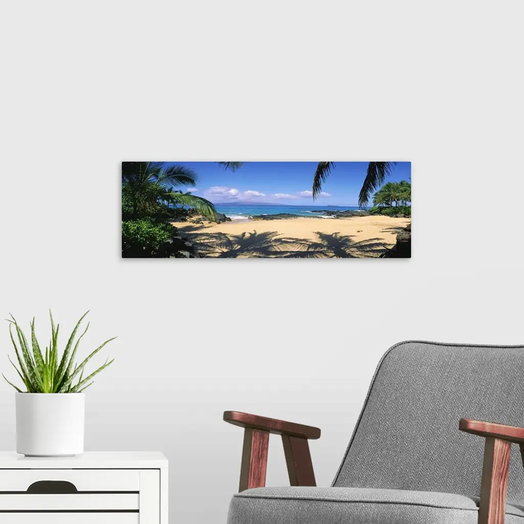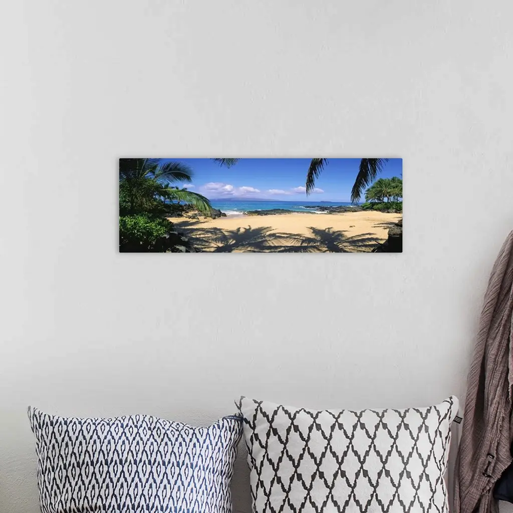 Hawaii, Maui, Makena; Small Secluded Beach Palm Shadows On Sand wall art for home and office decor. Discover canvas art prints, photos, mural, big canvas art and framed wall art in GreatBigCanvas.com's varied collections.