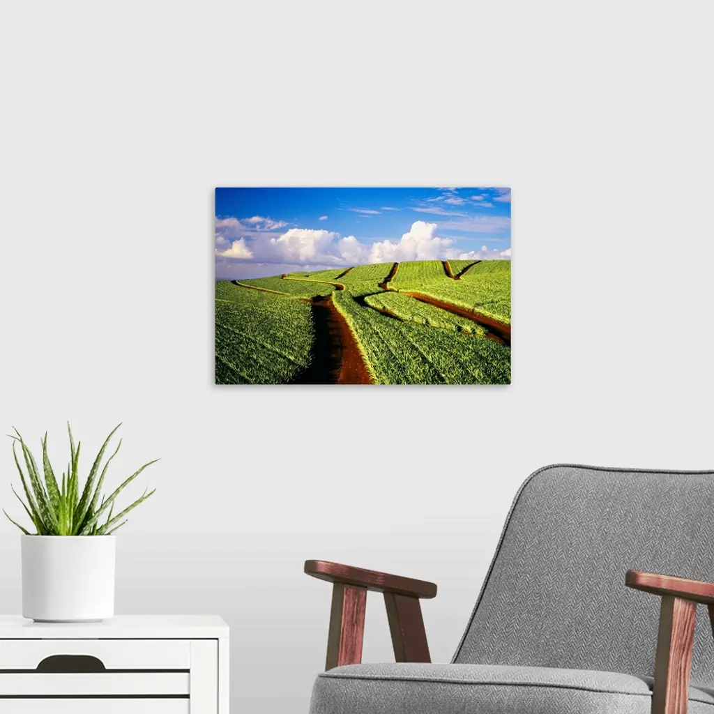 Hawaii, Maui, Pukalani, Pineapple Fields Stretch Out To The Horizon wall art for home and office decor. Discover canvas art prints, photos, mural, big canvas art and framed wall art in GreatBigCanvas.com's varied collections.