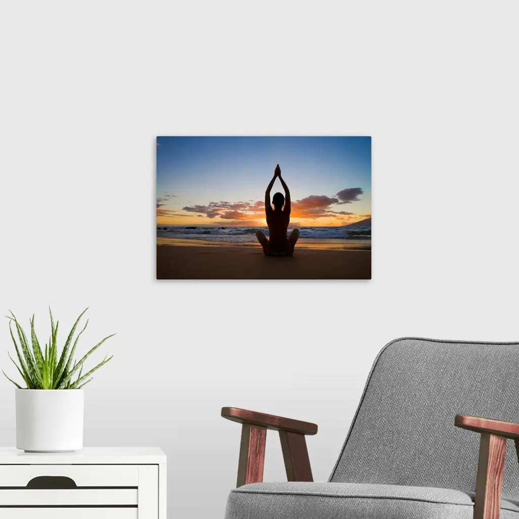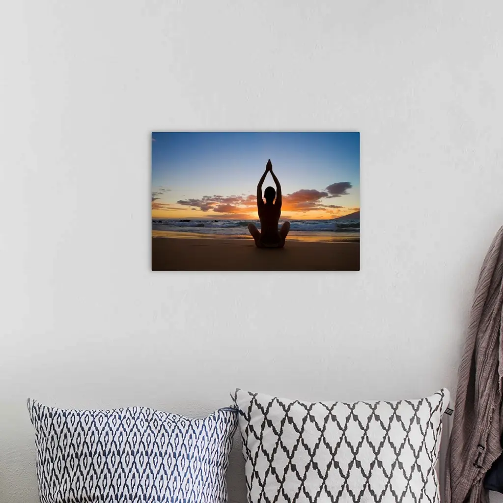 Hawaii, Maui, Silhouette Of Beautiful Girl Doing Yoga On The Beach wall art for home and office decor. Discover canvas art prints, photos, mural, big canvas art and framed wall art in GreatBigCanvas.com's varied collections.