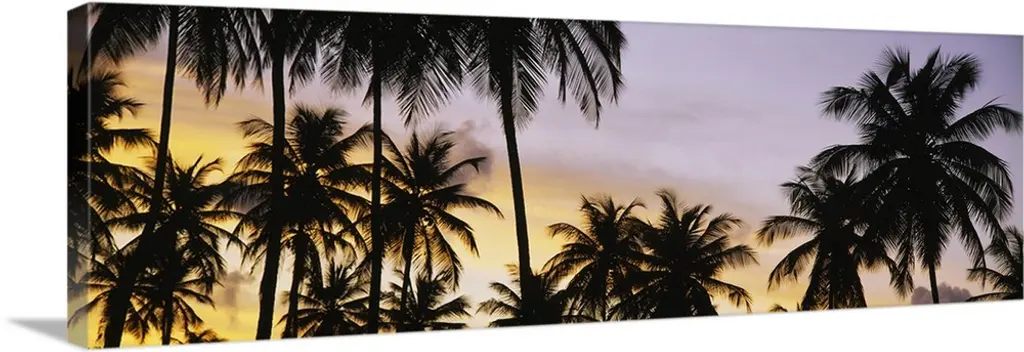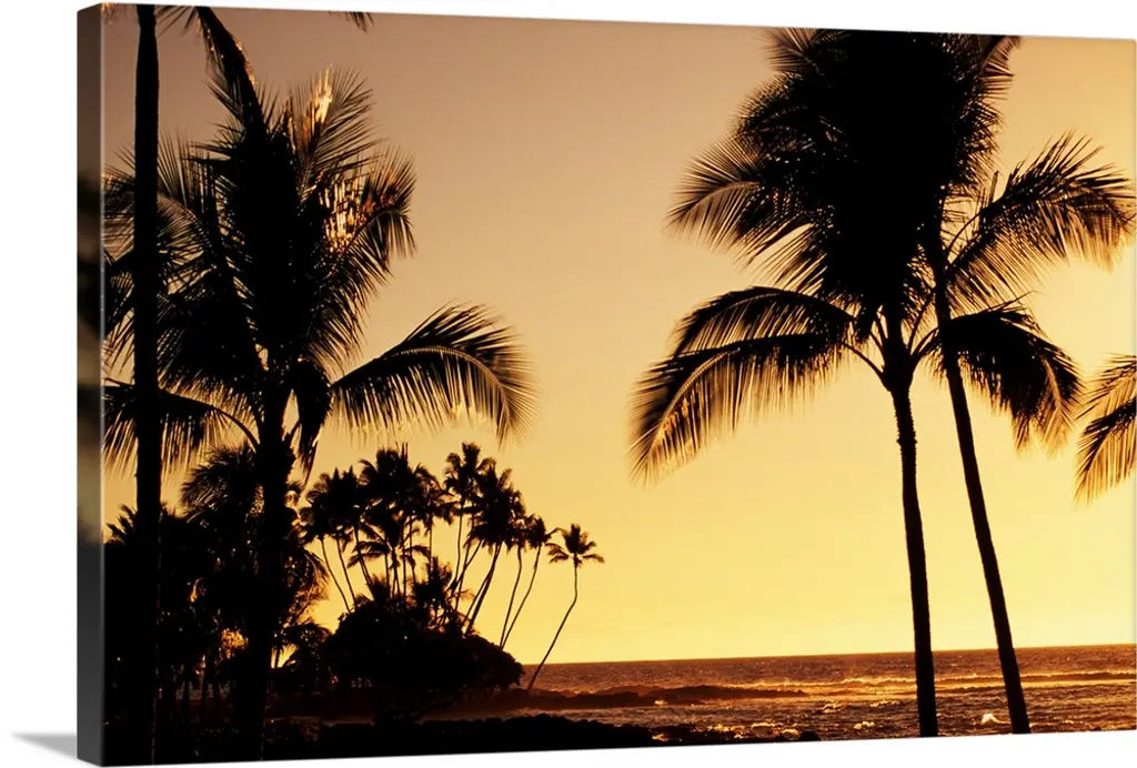 Hawaii, Molokai, Silhouetted Palms Against Sunset, Lanai In Background wall art for home and office decor. Discover canvas art prints, photos, mural, big canvas art and framed wall art in GreatBigCanvas.com's varied collections.