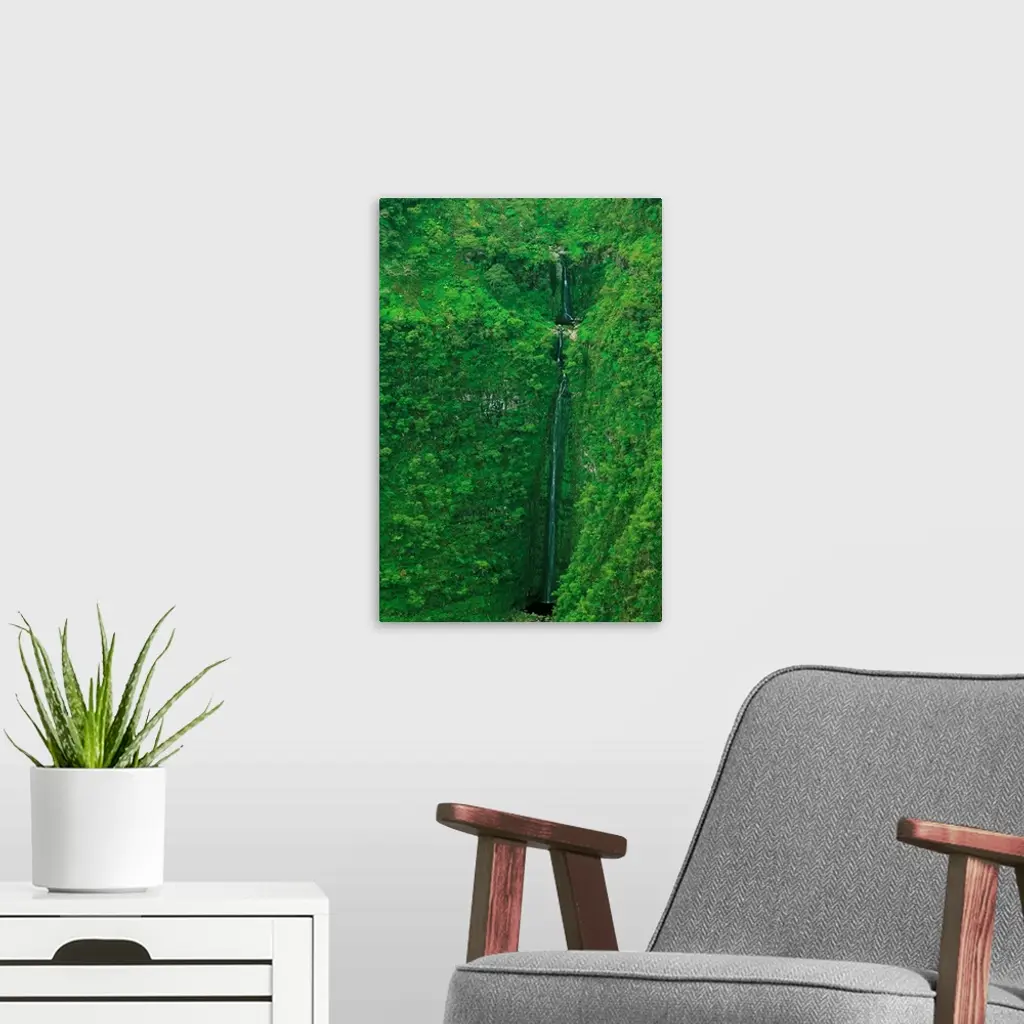 Hawaii, Molokai, Waikolu Valley, Waterfall From A Steep Rainforest Cliff wall art for home and office decor. Discover canvas art prints, photos, mural, big canvas art and framed wall art in GreatBigCanvas.com's varied collections.
