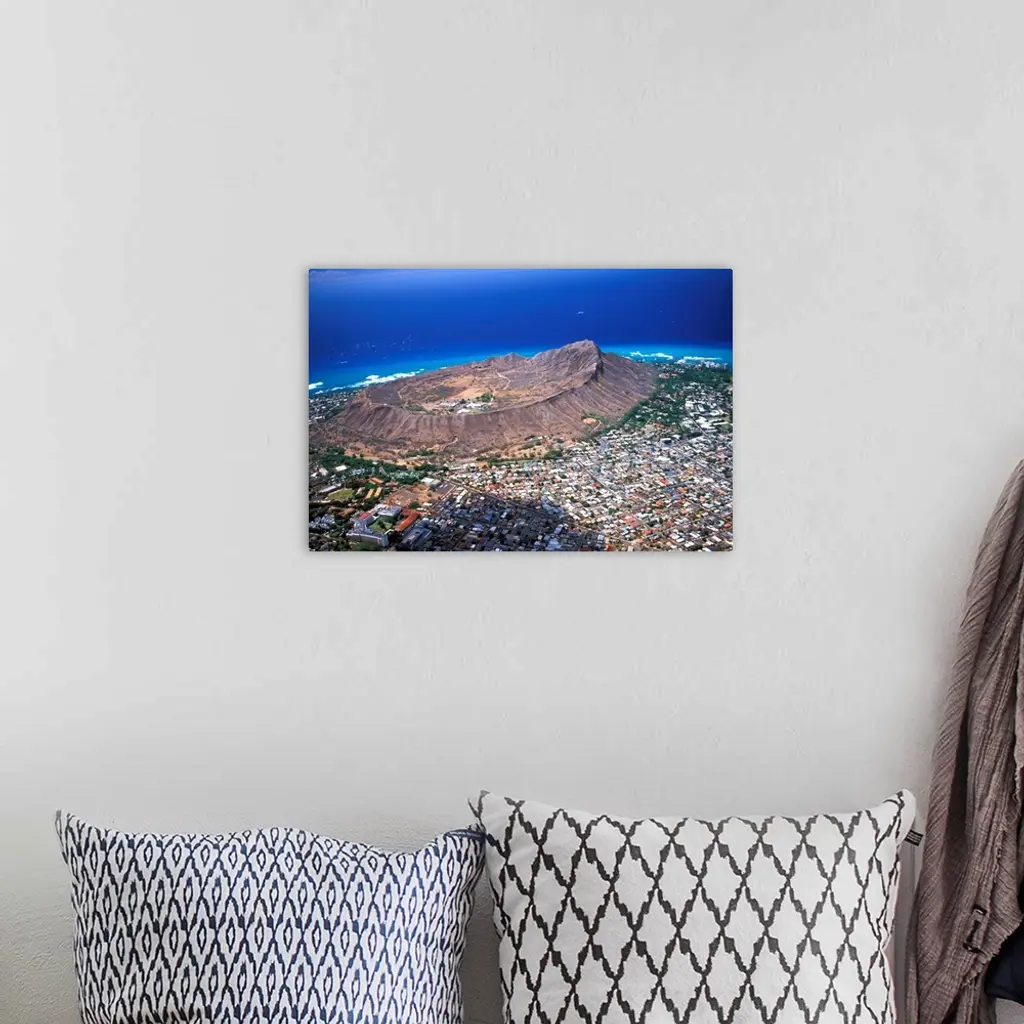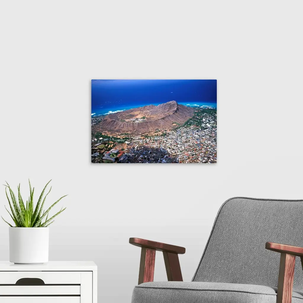 Hawaii, Oahu, Aerial View Of Diamond Head And Waikiki With Coast wall art for home and office decor. Discover canvas art prints, photos, mural, big canvas art and framed wall art in GreatBigCanvas.com's varied collections.