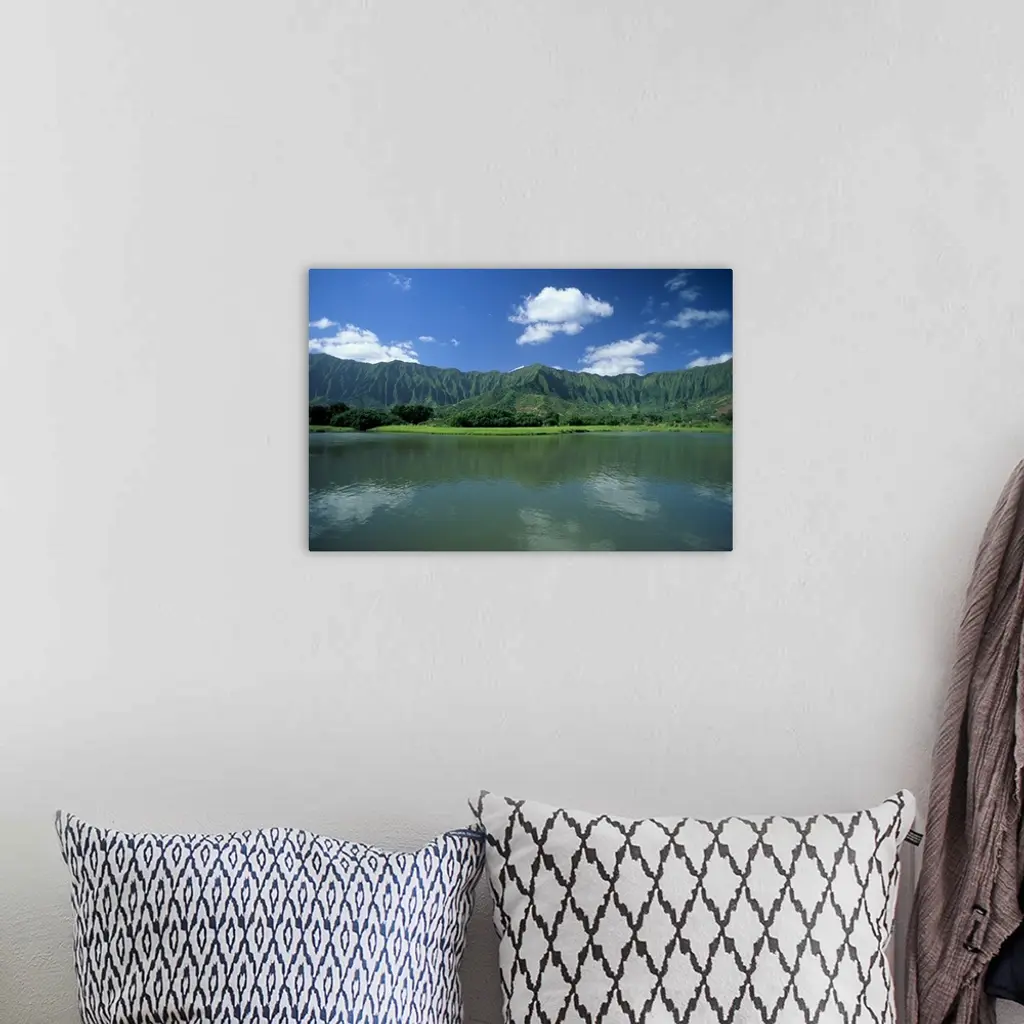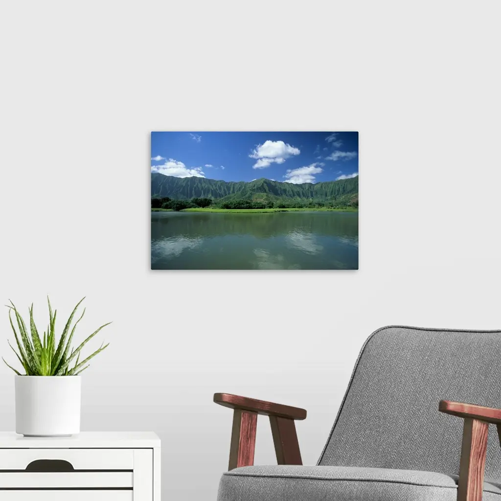 Hawaii, Oahu, Calm Pond In Foreground, Ko'olau Mountains Background wall art for home and office decor. Discover canvas art prints, photos, mural, big canvas art and framed wall art in GreatBigCanvas.com's varied collections.