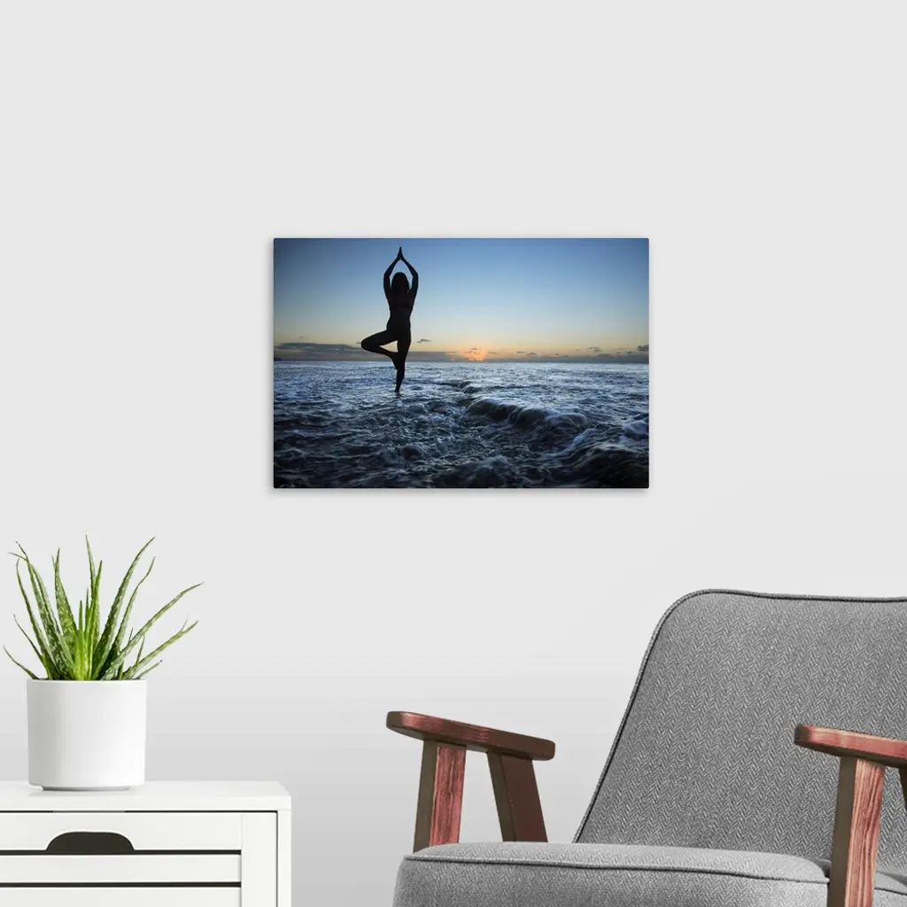 Hawaii, Oahu, Fit Young Girl On The Beach Doing Yoga On The Rocky Coastline wall art for home and office decor. Discover canvas art prints, photos, mural, big canvas art and framed wall art in GreatBigCanvas.com's varied collections.