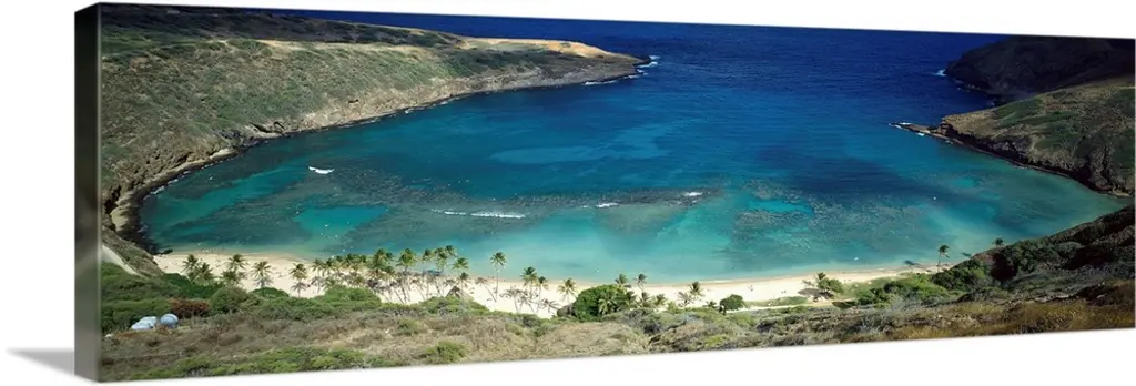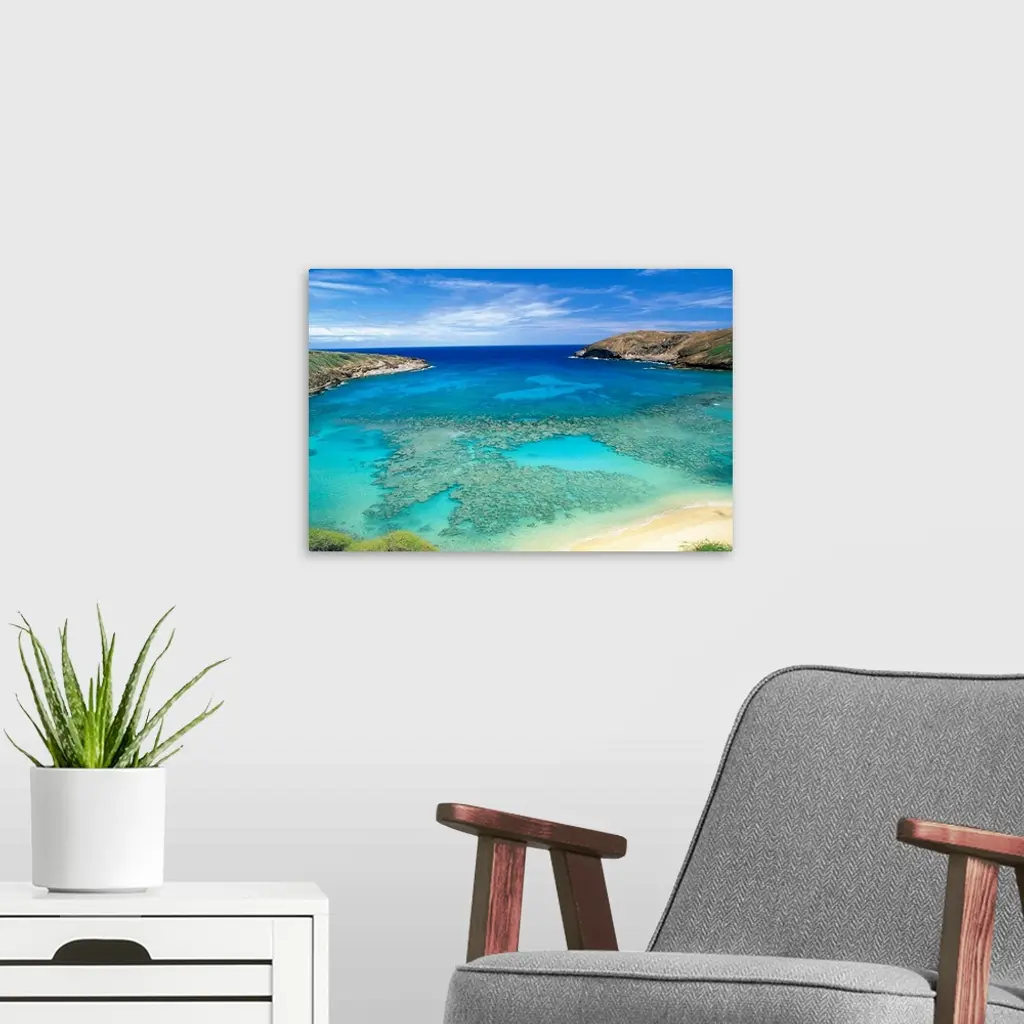 Hawaii, Oahu, Hanauma Bay State Park, View From Above Looking In wall art for home and office decor. Discover canvas art prints, photos, mural, big canvas art and framed wall art in GreatBigCanvas.com's varied collections.