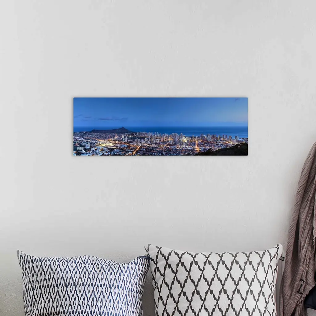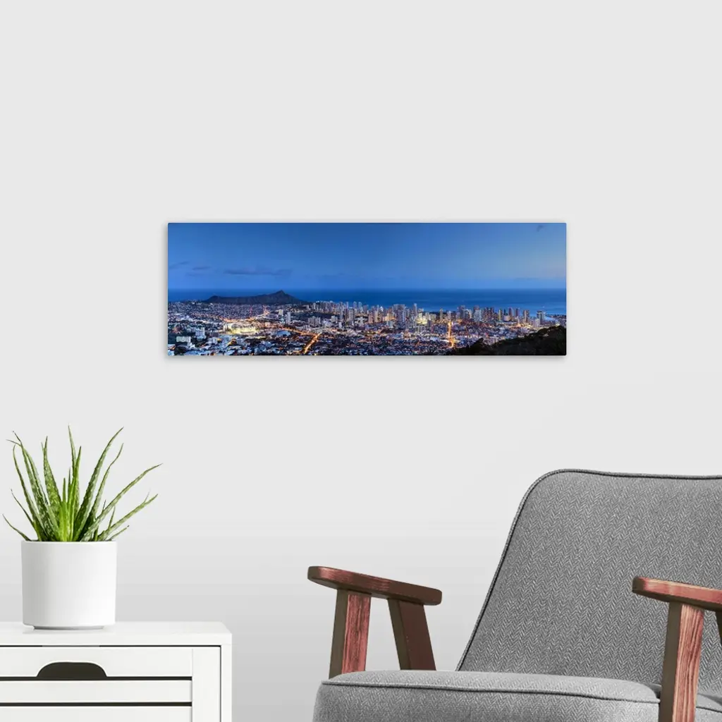 USA, Hawaii, Oahu, Honolulu Skyline and Diamond Head Crater