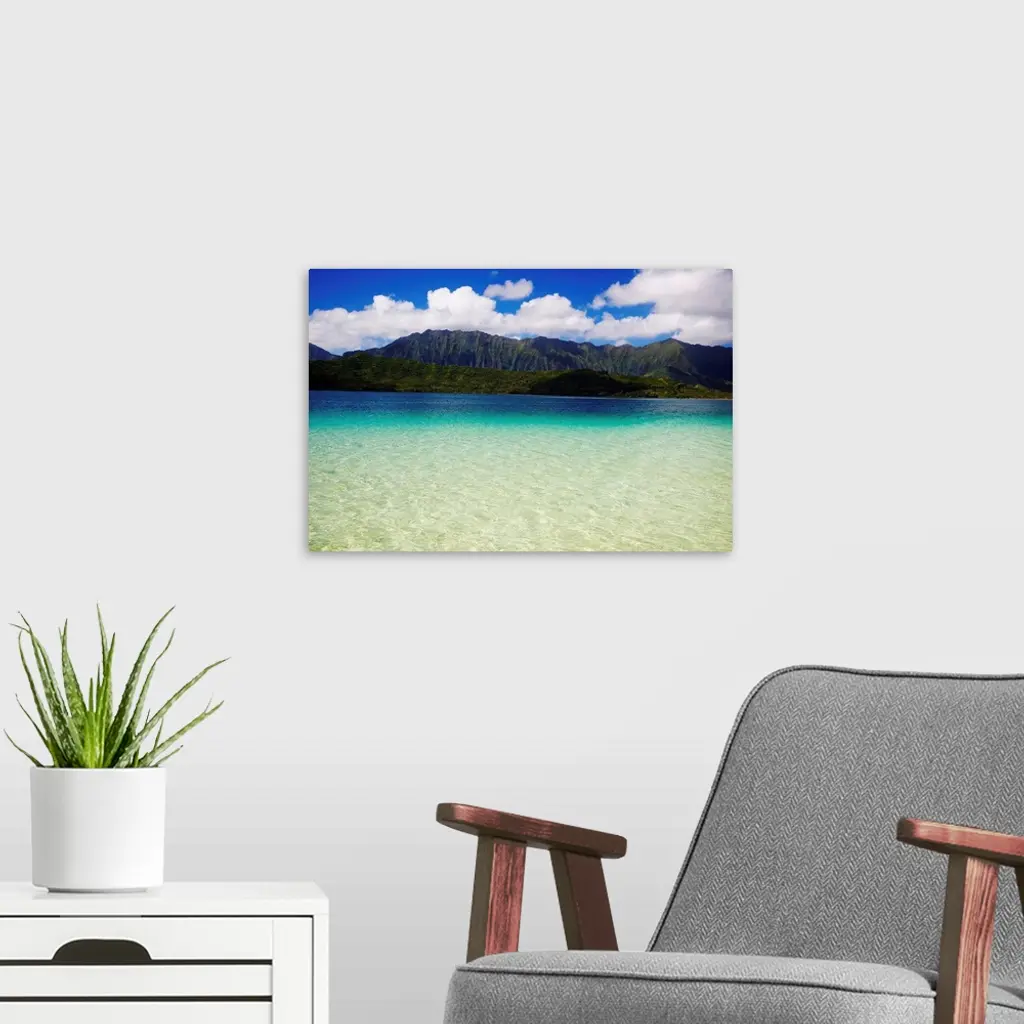 Hawaii, Oahu, Kaneohe Bay And Windward Coast As Seen From The Sandbar wall art for home and office decor. Discover canvas art prints, photos, mural, big canvas art and framed wall art in GreatBigCanvas.com's varied collections.