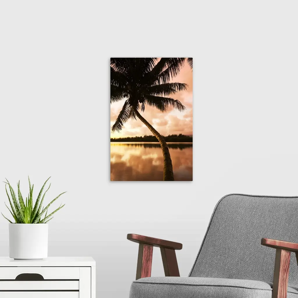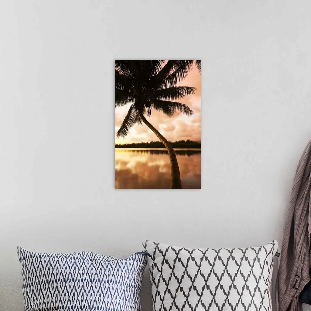 Hawaii, Oahu, Kualoa Ranch, Palm Tree At Sunrise, Sky Reflecting On Water wall art for home and office decor. Discover canvas art prints, photos, mural, big canvas art and framed wall art in GreatBigCanvas.com's varied collections.