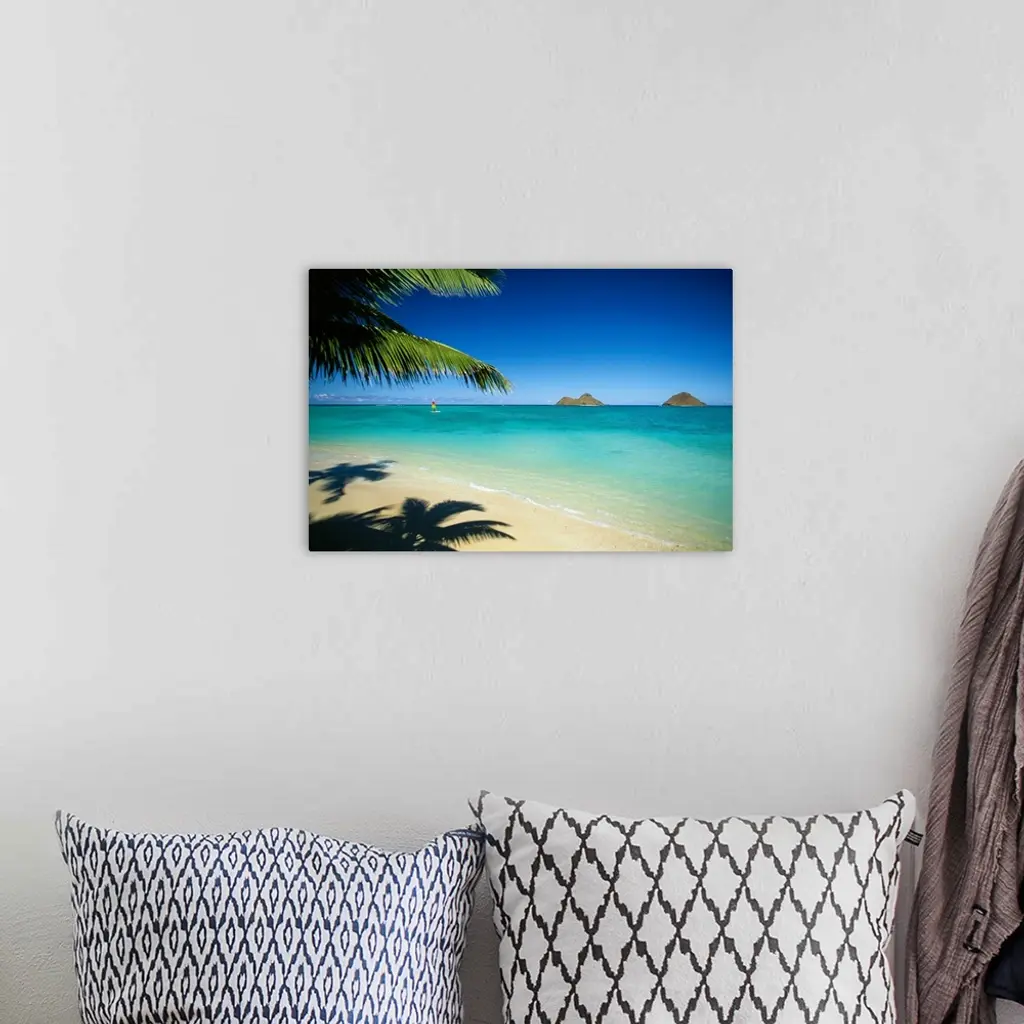 Hawaii, Oahu, Lanikai Beach, Hobie Cat Sailing Near Mokulua Island wall art for home and office decor. Discover canvas art prints, photos, mural, big canvas art and framed wall art in GreatBigCanvas.com's varied collections.