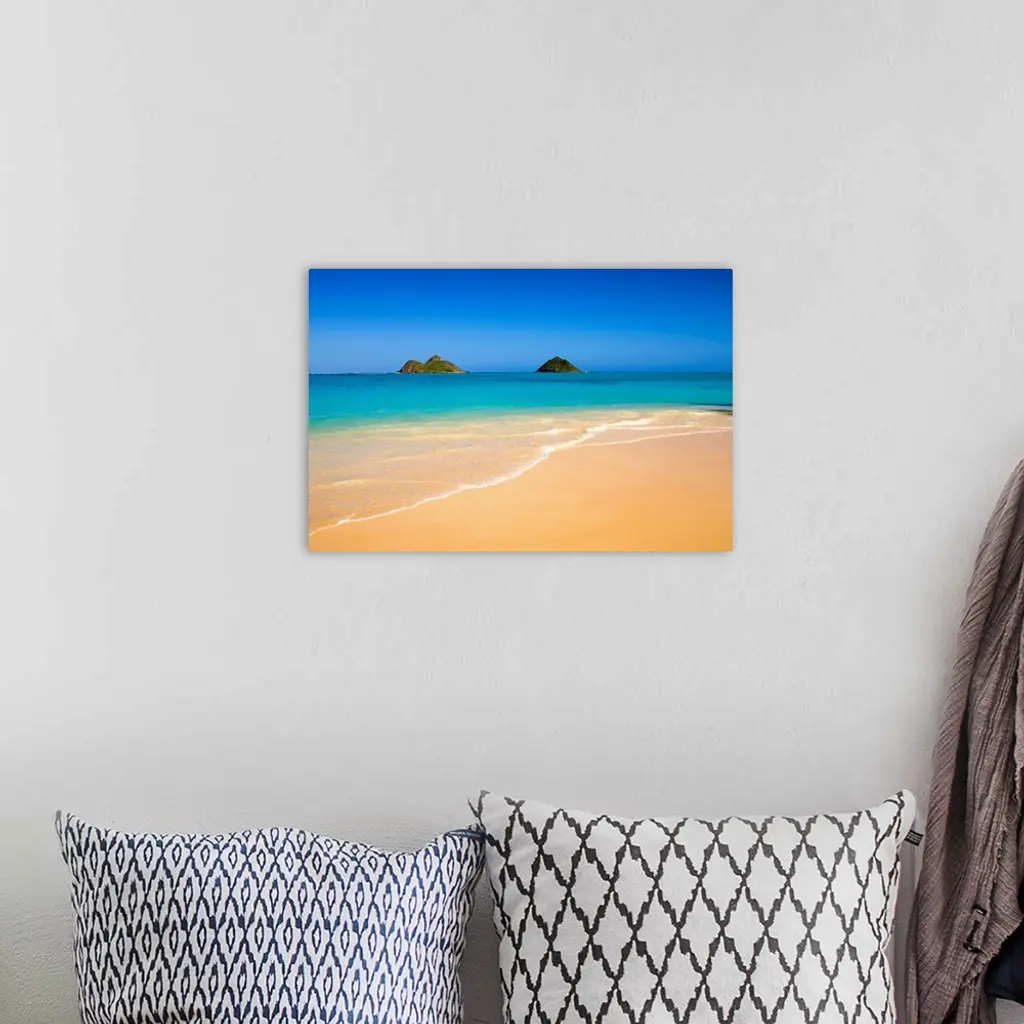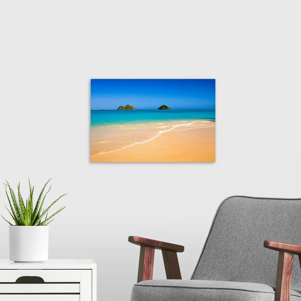 Hawaii, Oahu, Lanikai Beach, Mokulua Islands, scenic landscape on a bright day