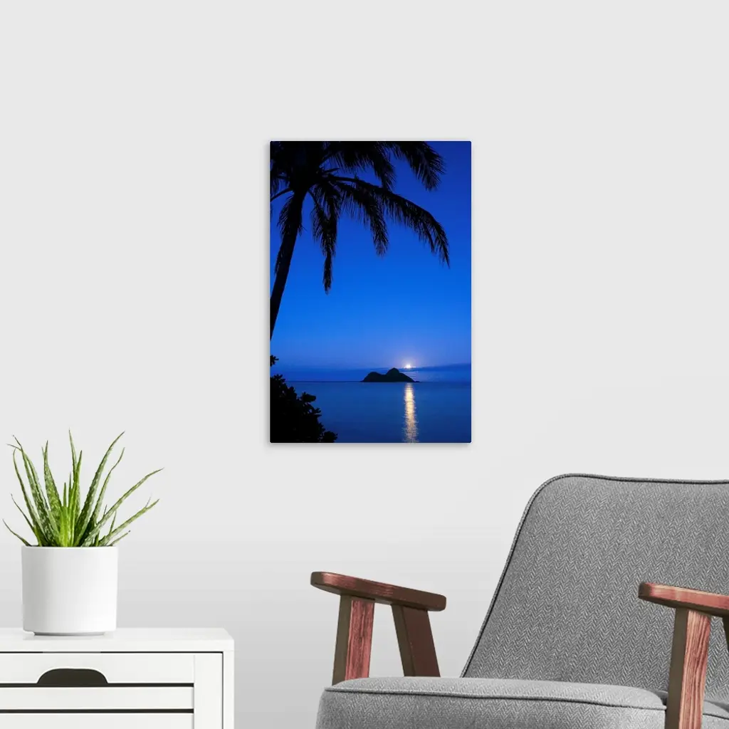 Hawaii, Oahu, Lanikai, Moonrise With Mokulua Islands In Background wall art for home and office decor. Discover canvas art prints, photos, mural, big canvas art and framed wall art in GreatBigCanvas.com's varied collections.