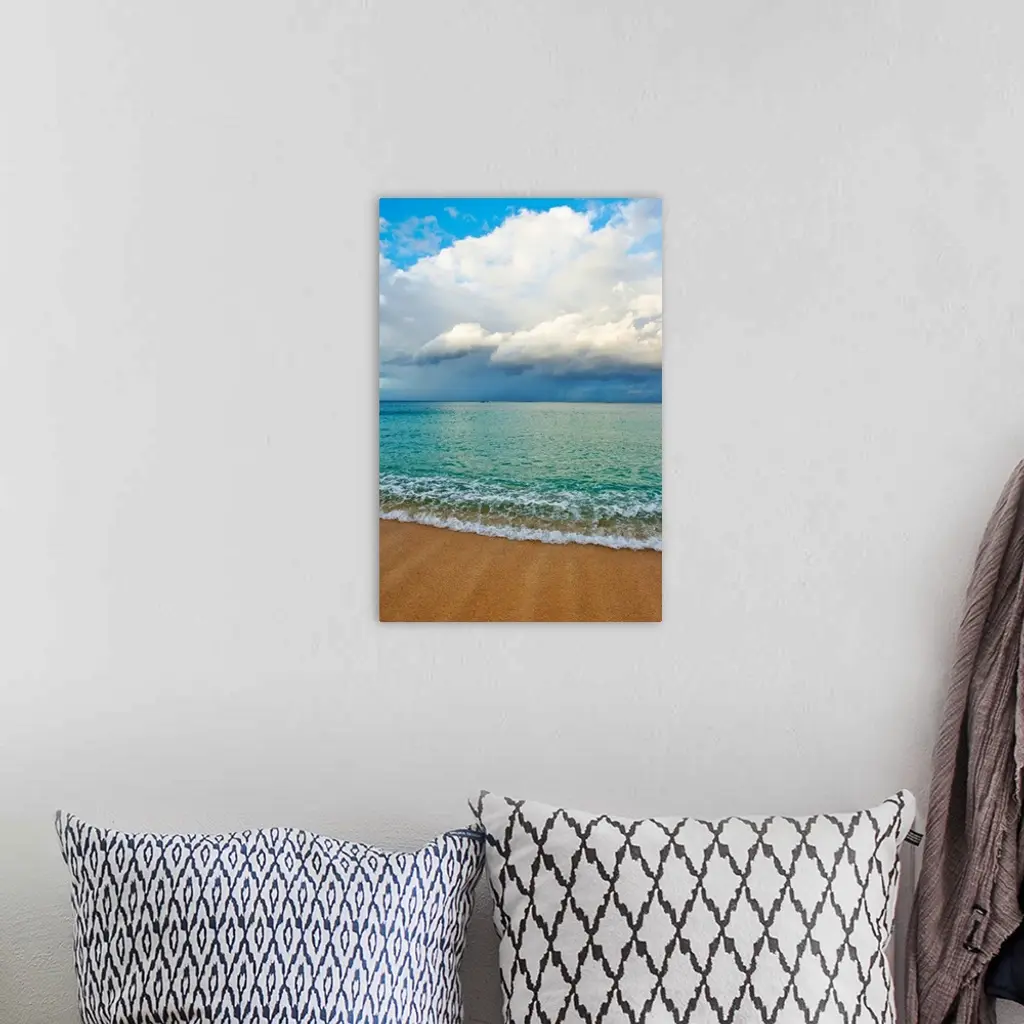 Hawaii, Oahu, Lanikai, Ocean And Clouds Over A Sandy Beach