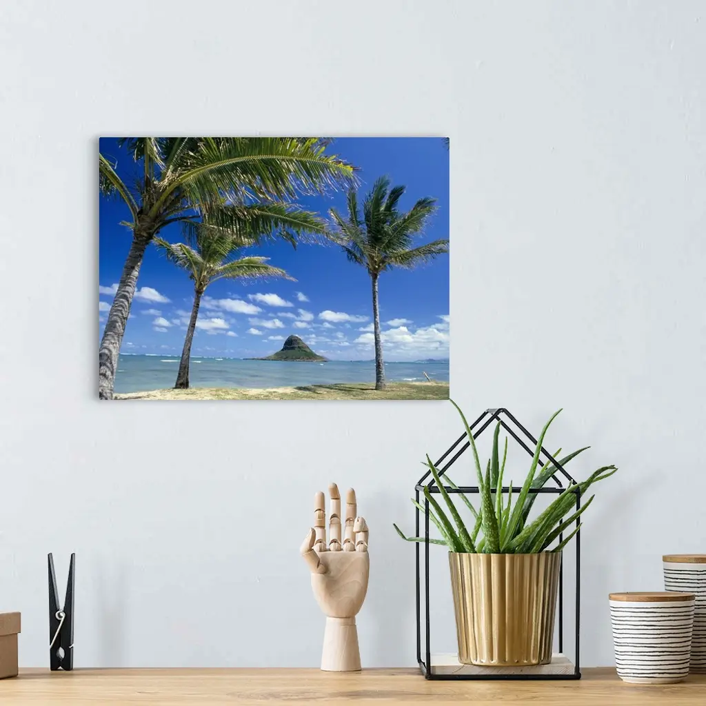 Hawaii, Oahu, Mokoli'i Island And Palm Trees wall art for home and office decor. Discover canvas art prints, photos, mural, big canvas art and framed wall art in GreatBigCanvas.com's varied collections.