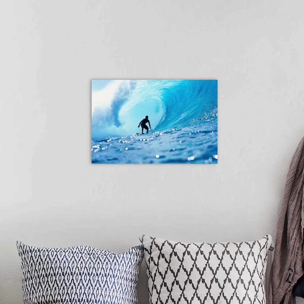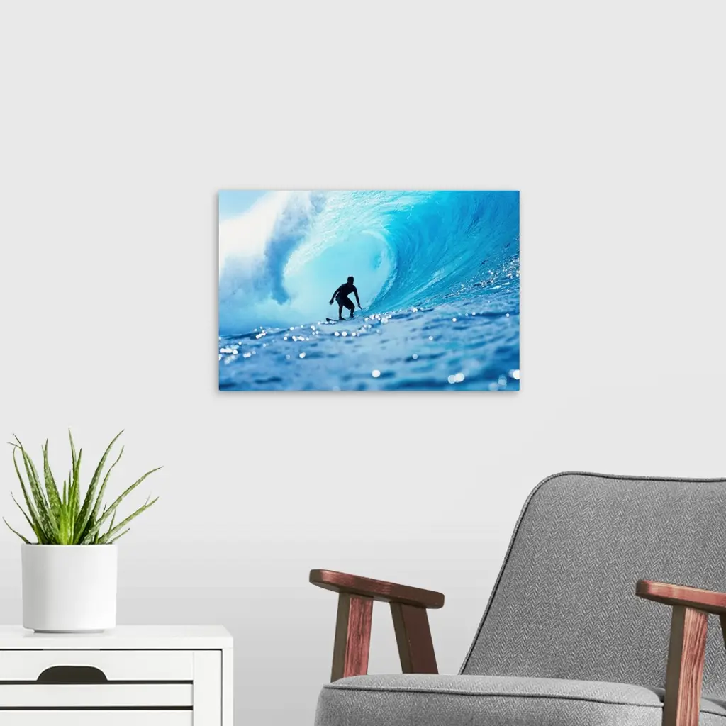 Hawaii, Oahu, North Shore, Silhouette Of Surfer In Pipeline wall art for home and office decor. Discover canvas art prints, photos, mural, big canvas art and framed wall art in GreatBigCanvas.com's varied collections.