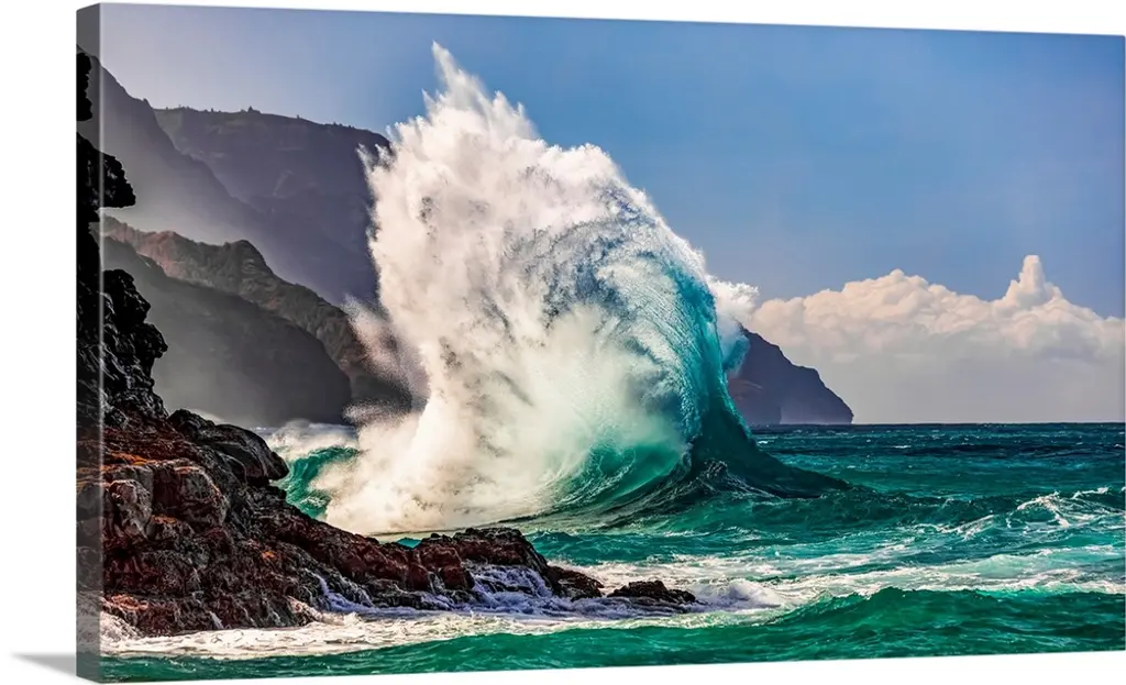 Hawaii, Oahu, North Shore, Waves At Waimea Bay wall art for home and office decor. Discover canvas art prints, photos, mural, big canvas art and framed wall art in GreatBigCanvas.com's varied collections.